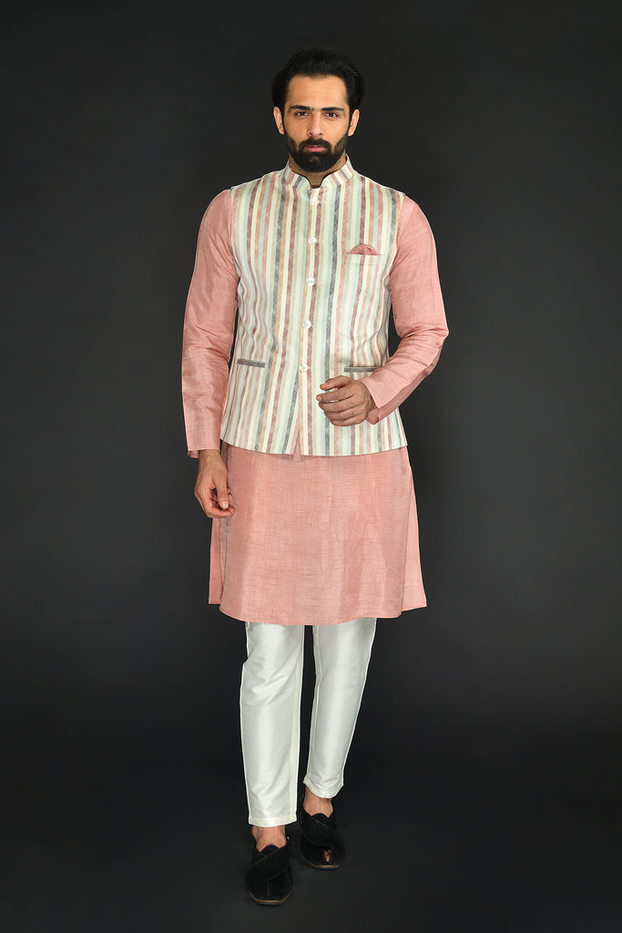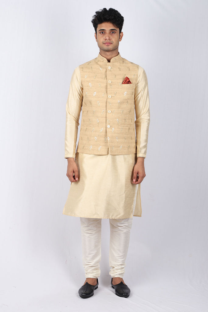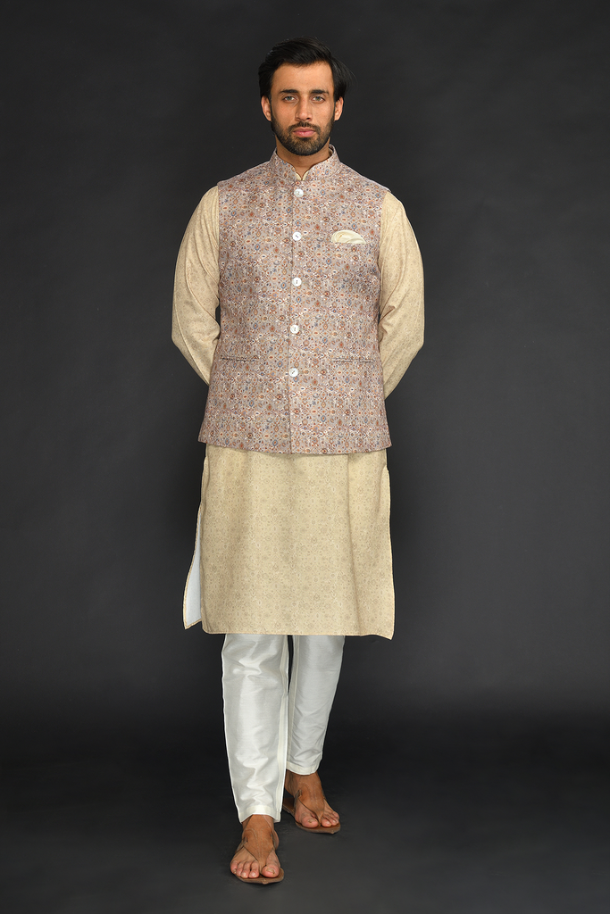 Hastakala Nehru Jacket with Kurta Set - Beige