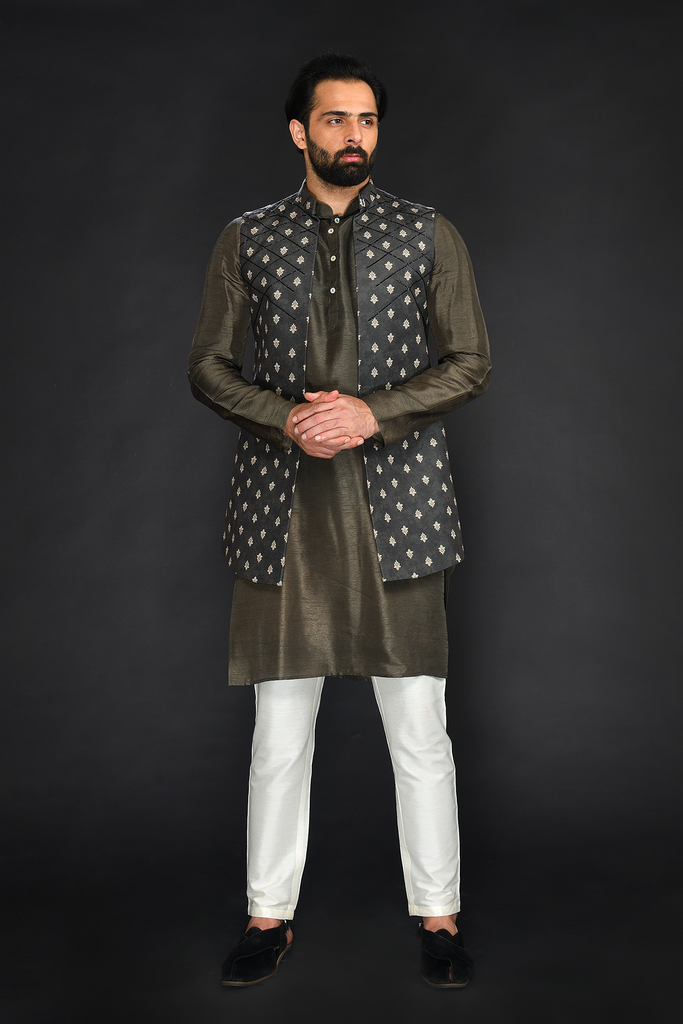 Black Gold Printed Bundi with Kurta and Chudidar