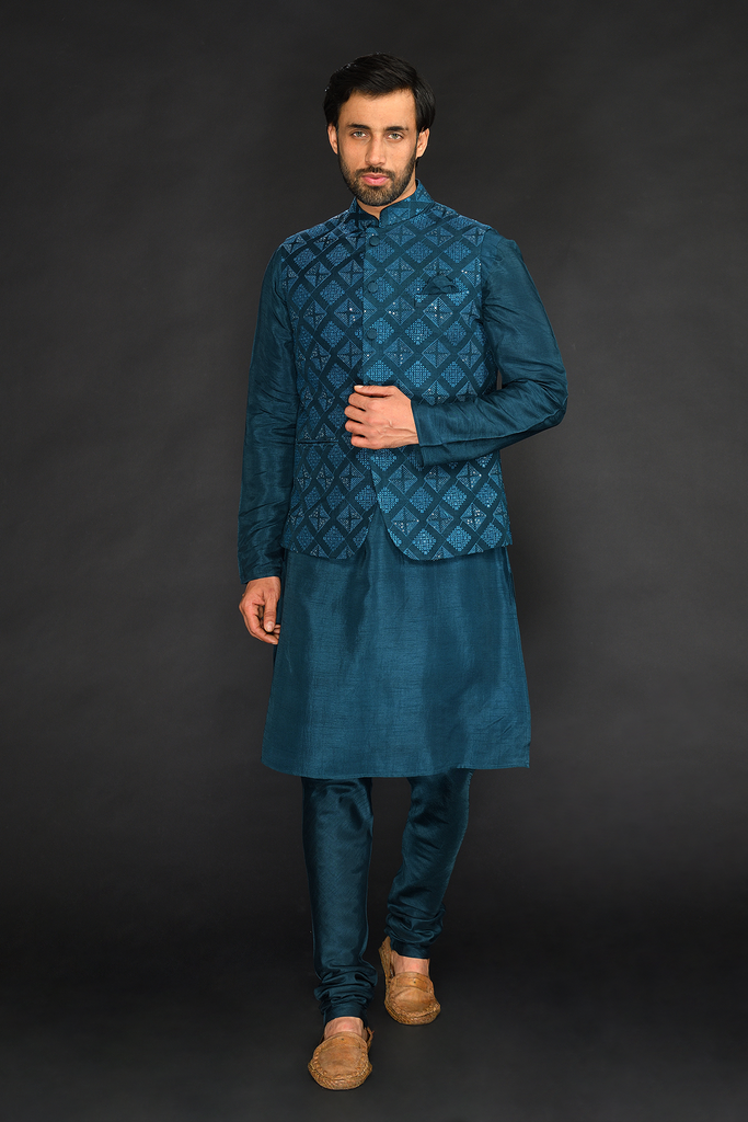Teal Green Bundi with Kurta and Chudidar