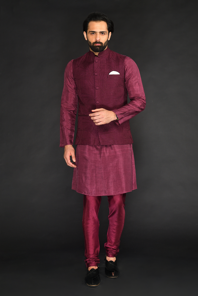 Maroon Bundi with Kurta and Chudidar