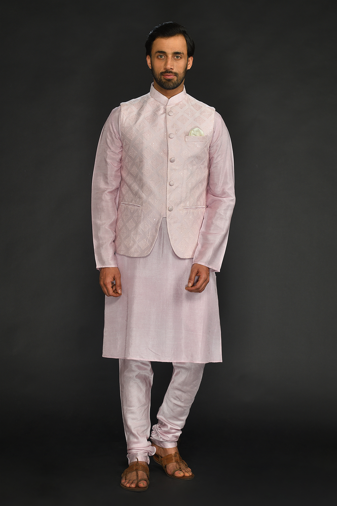 Powder Pink Bundi with Kurta and Chudidar