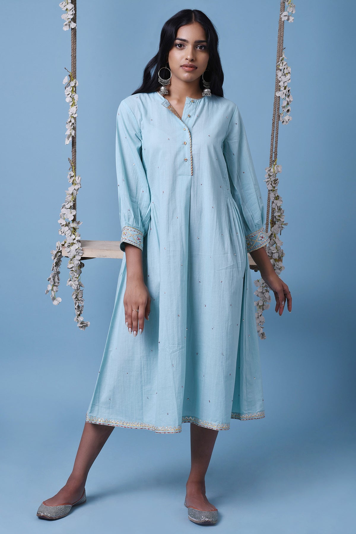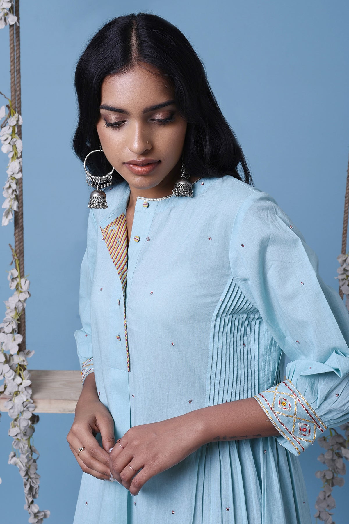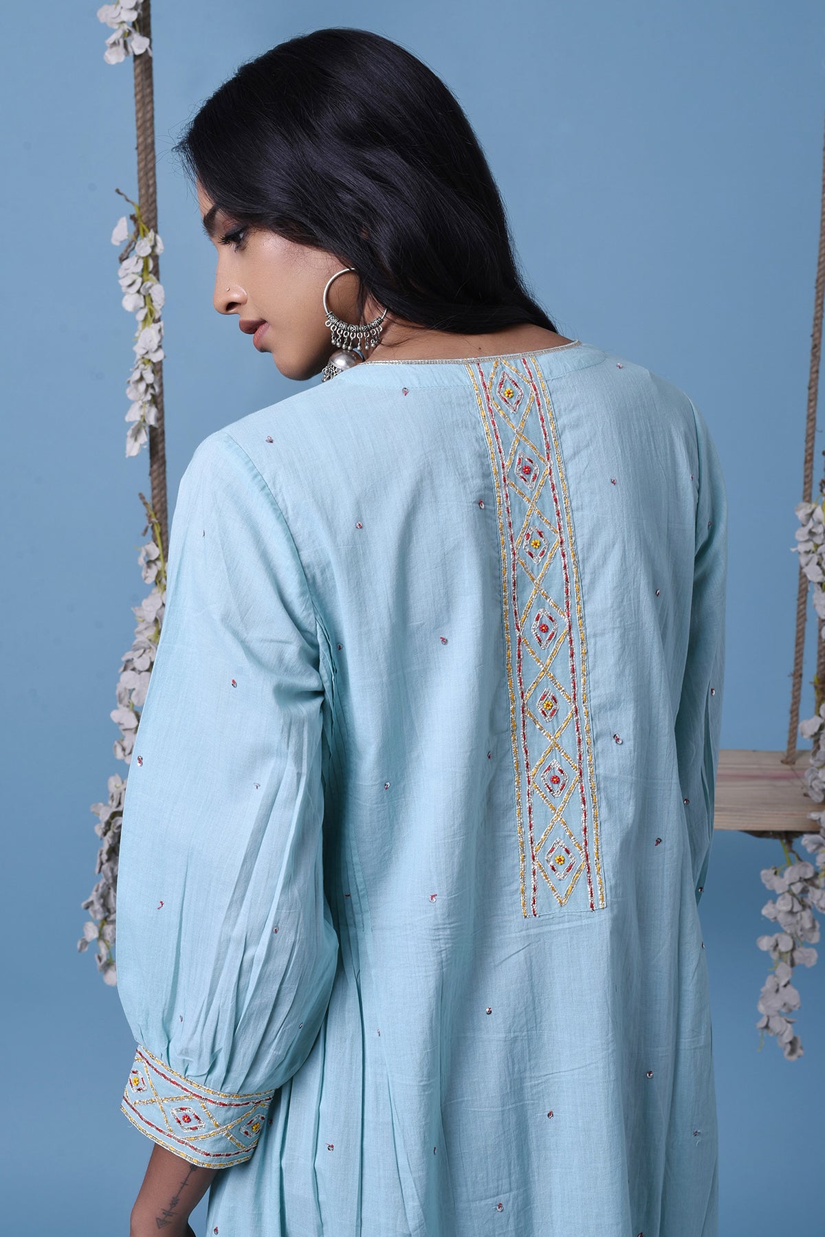 Light Blue tunic/Kurta is made of cotton and embroidered with gota and bead work.