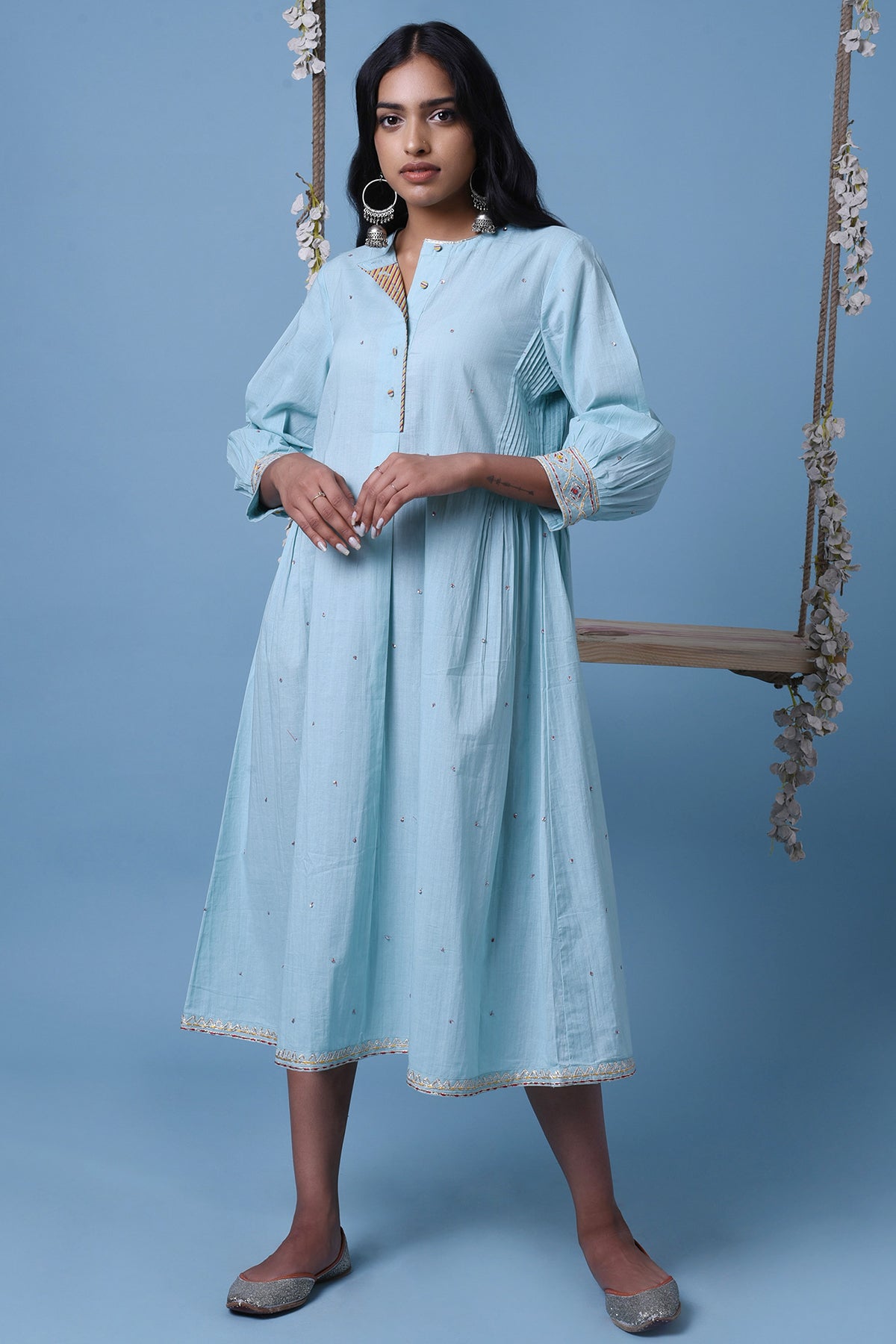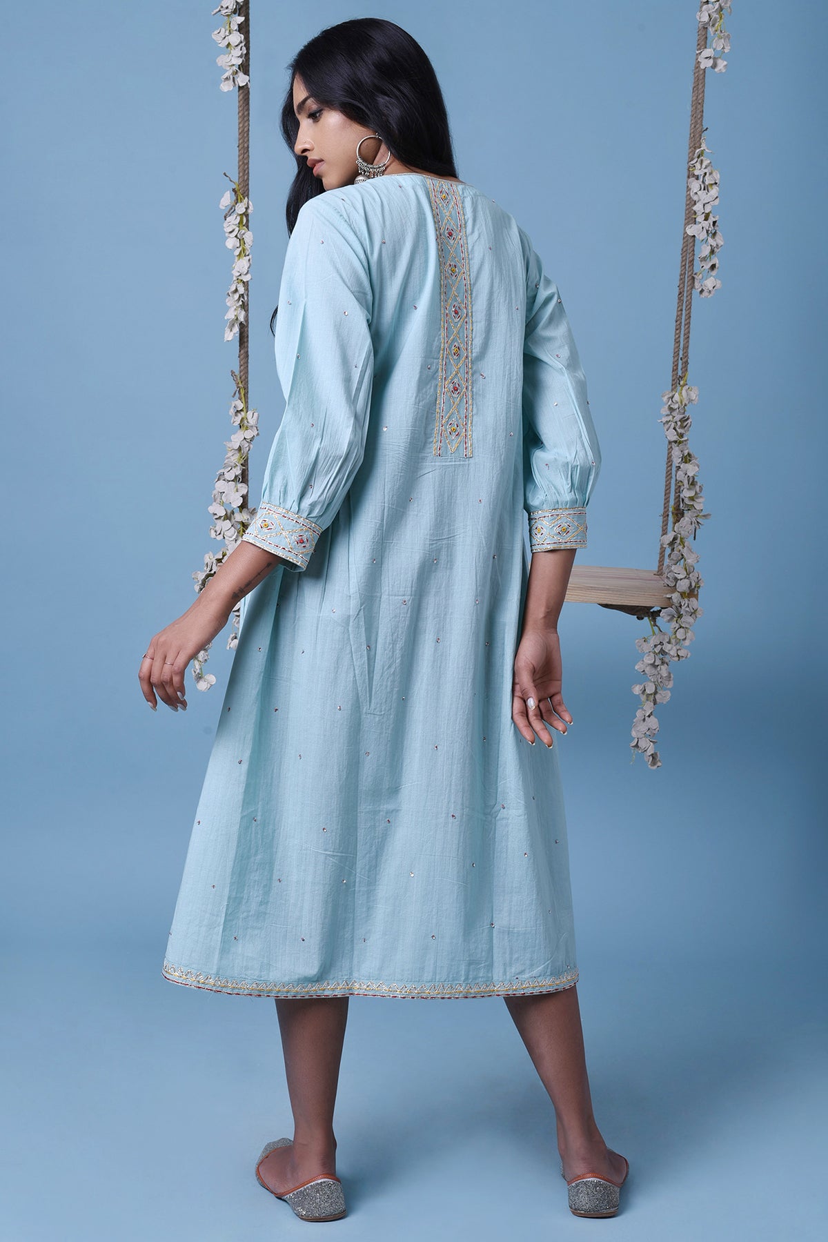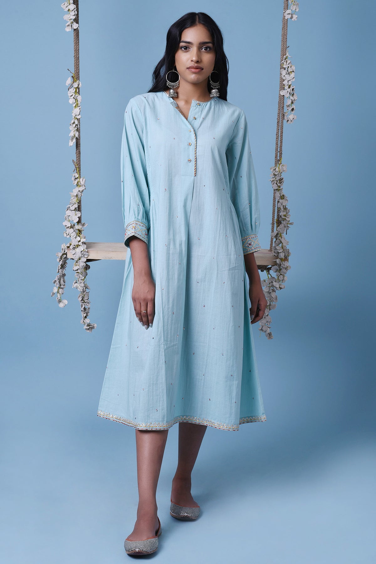 Light Blue tunic/Kurta is made of cotton and embroidered with gota and bead work.