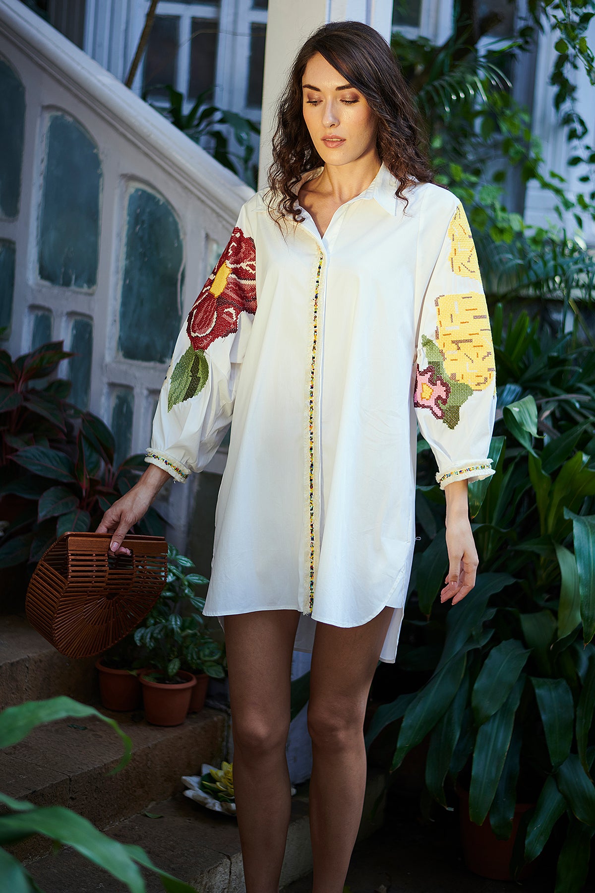 A signature piece from this Spring Summer 20 collection. This classic Nika 1.0 The BLAIRE DRESS will be a striking, timeless addition to your wardrobe. It is Crafted from a luxuriously soft cotton and showcases the stunning cross stitch embroidery, This relaxed fit shirt dress is a special one-of-a-kind piece that will be extremely wearable. Can be styled with flip flops at the beach or kettle heels for a