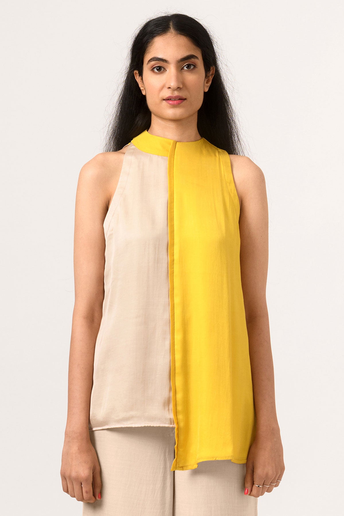 Yellow-Ecru Color Blocked Halter Neck Co-ord Set
