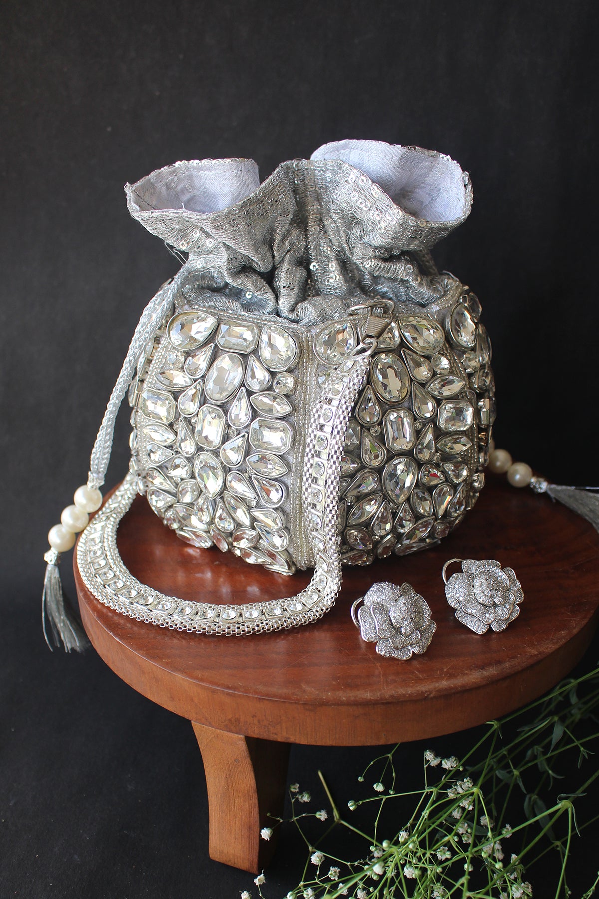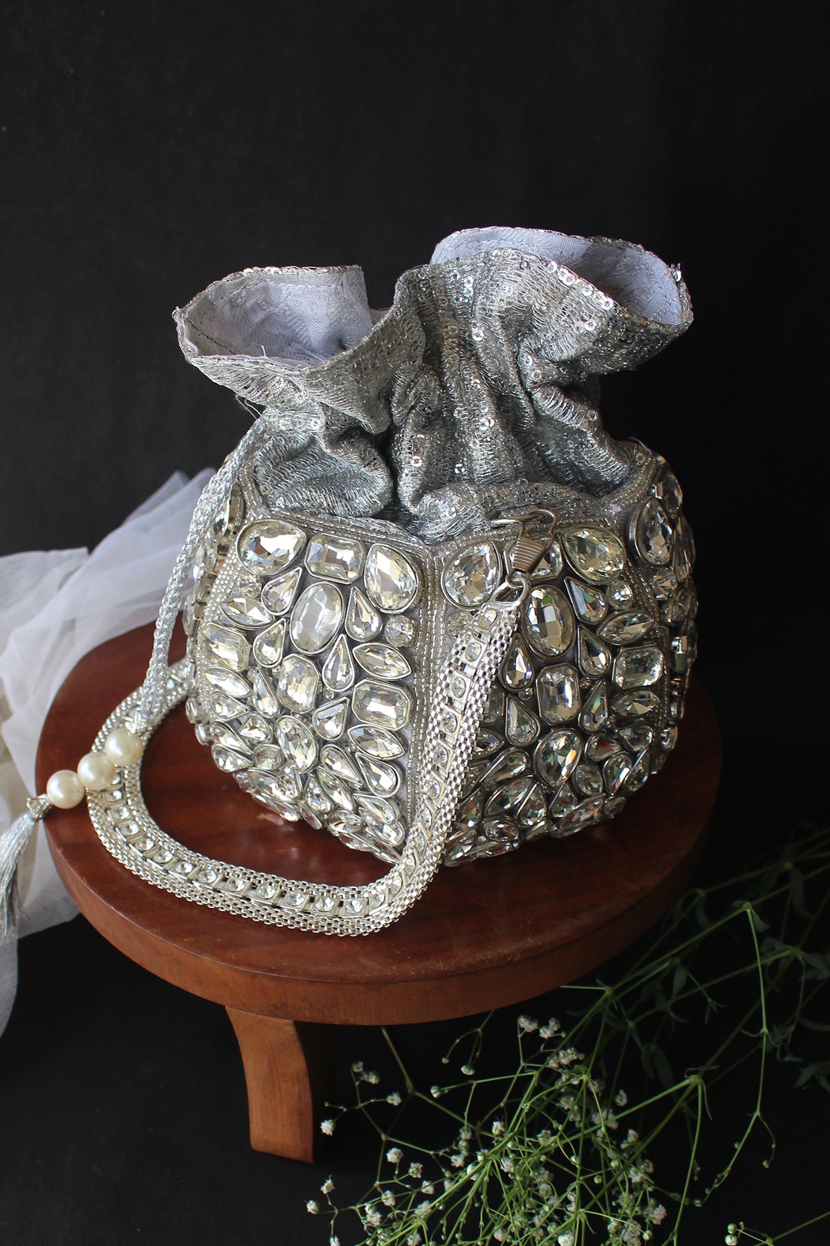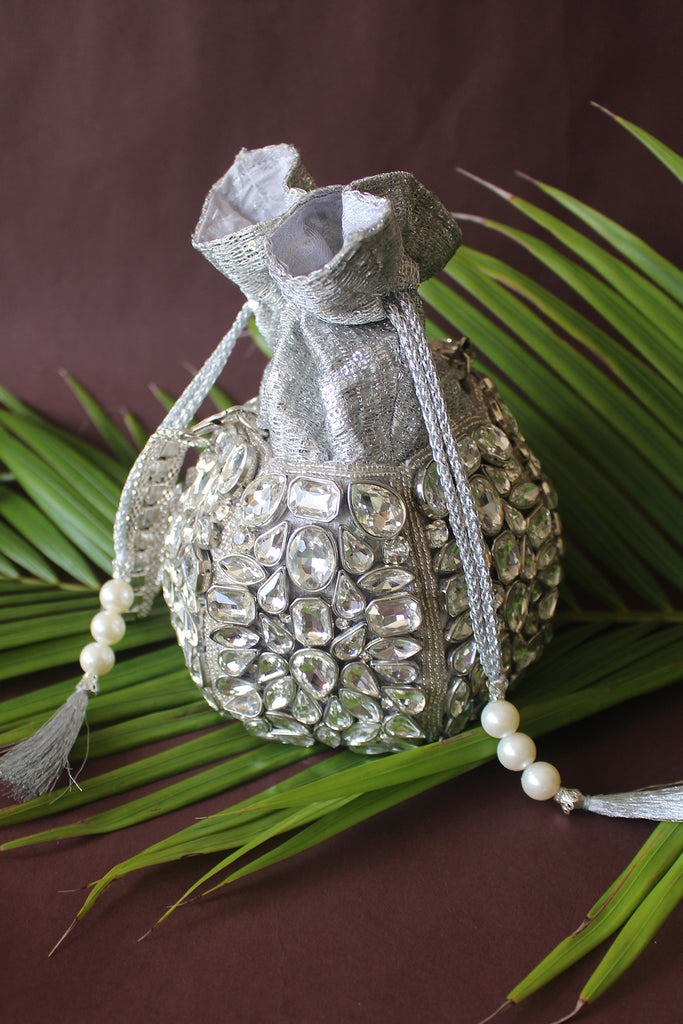 Diamond Bucket (Silver) Potli