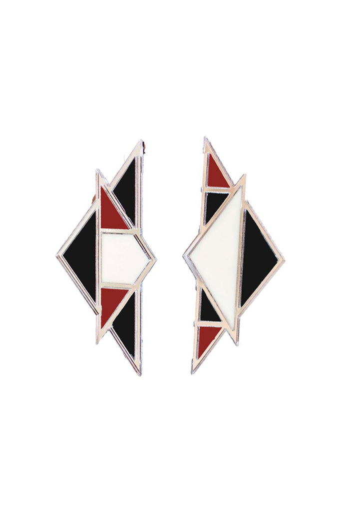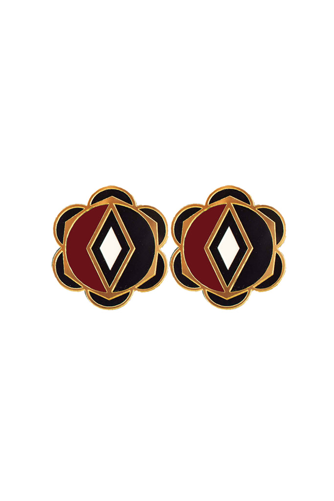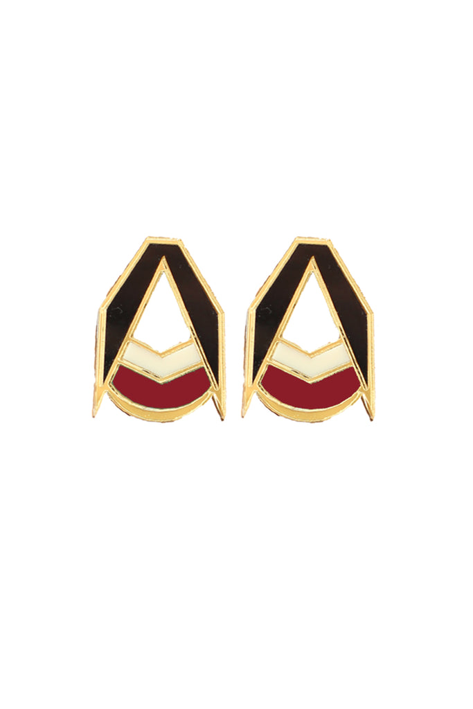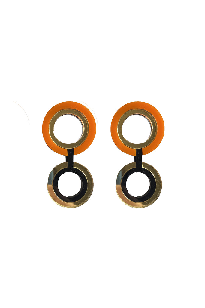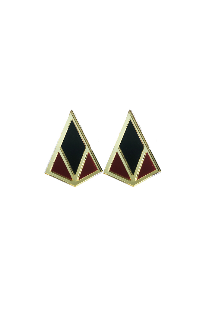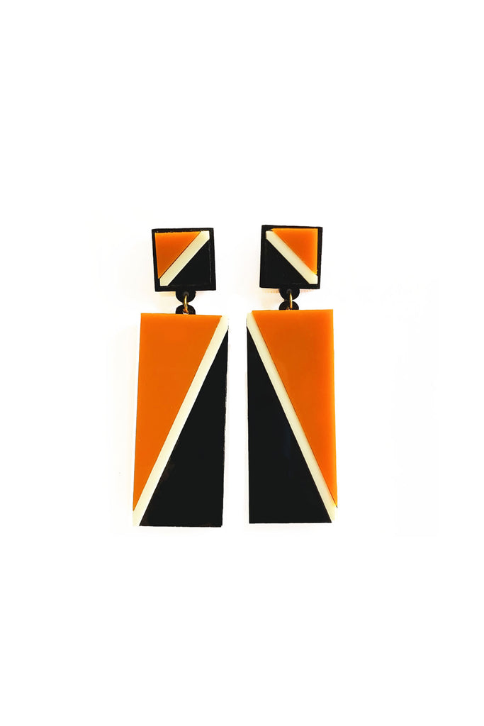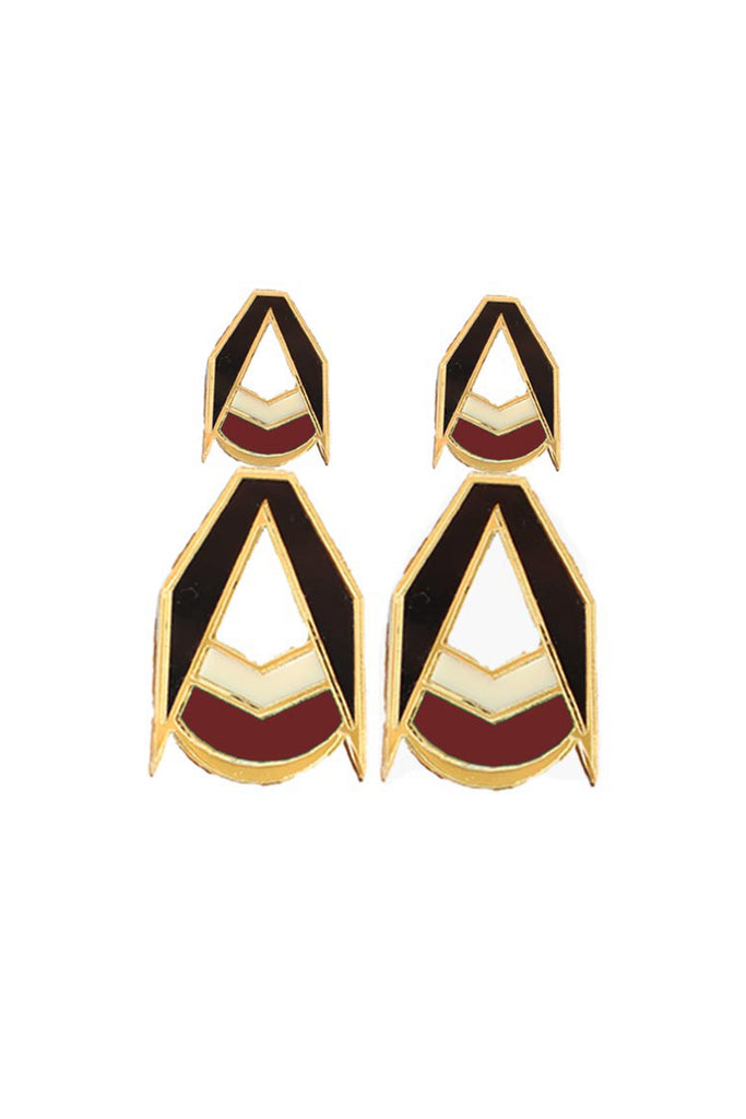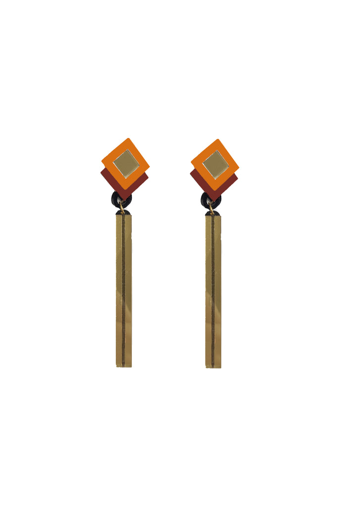 Four Sided Stud Dangler - Orange, Maroon & Gold Color