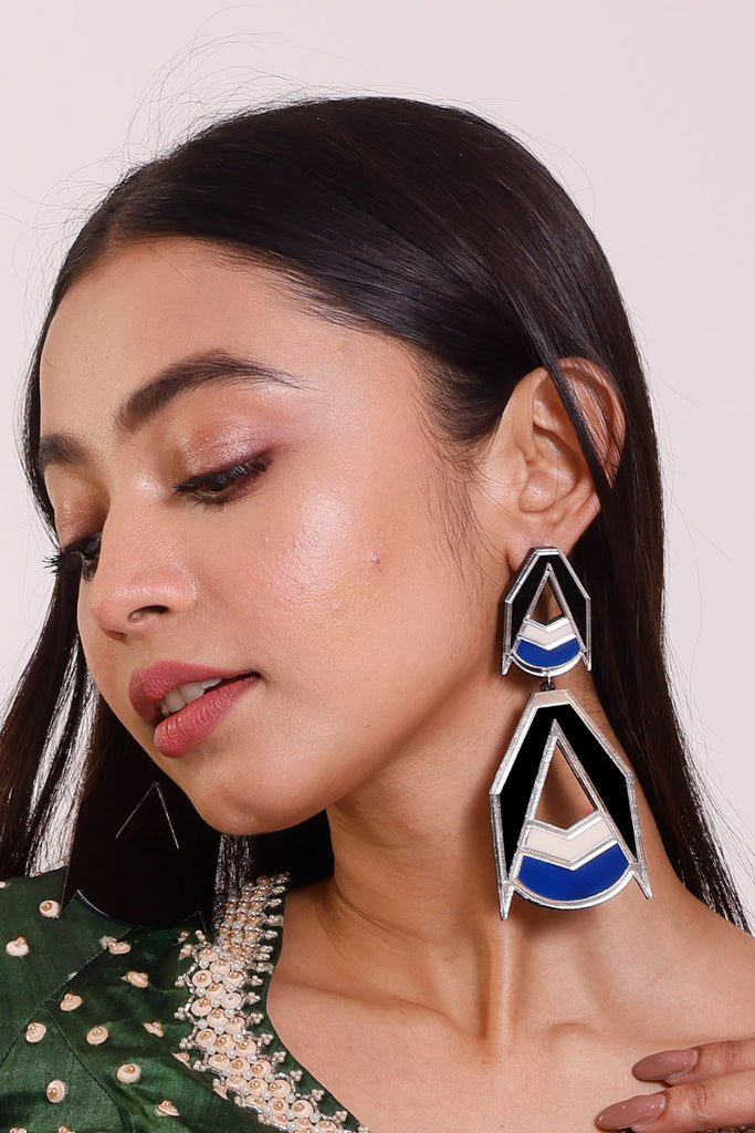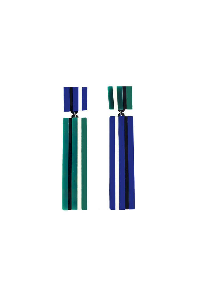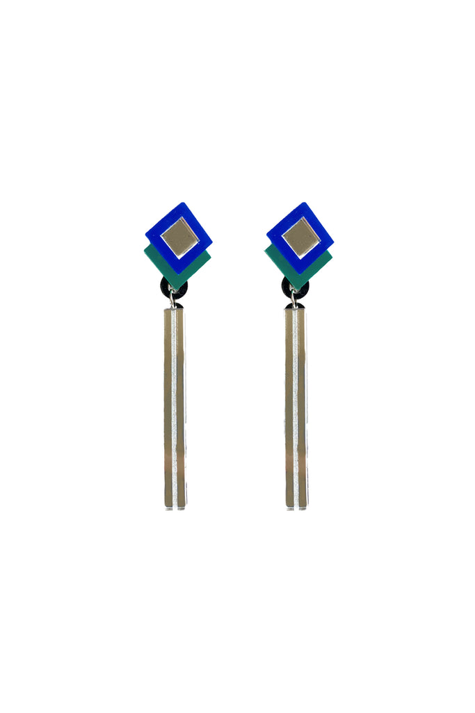 Four Sided Stud Dangler - Blue, Green & Silver Color