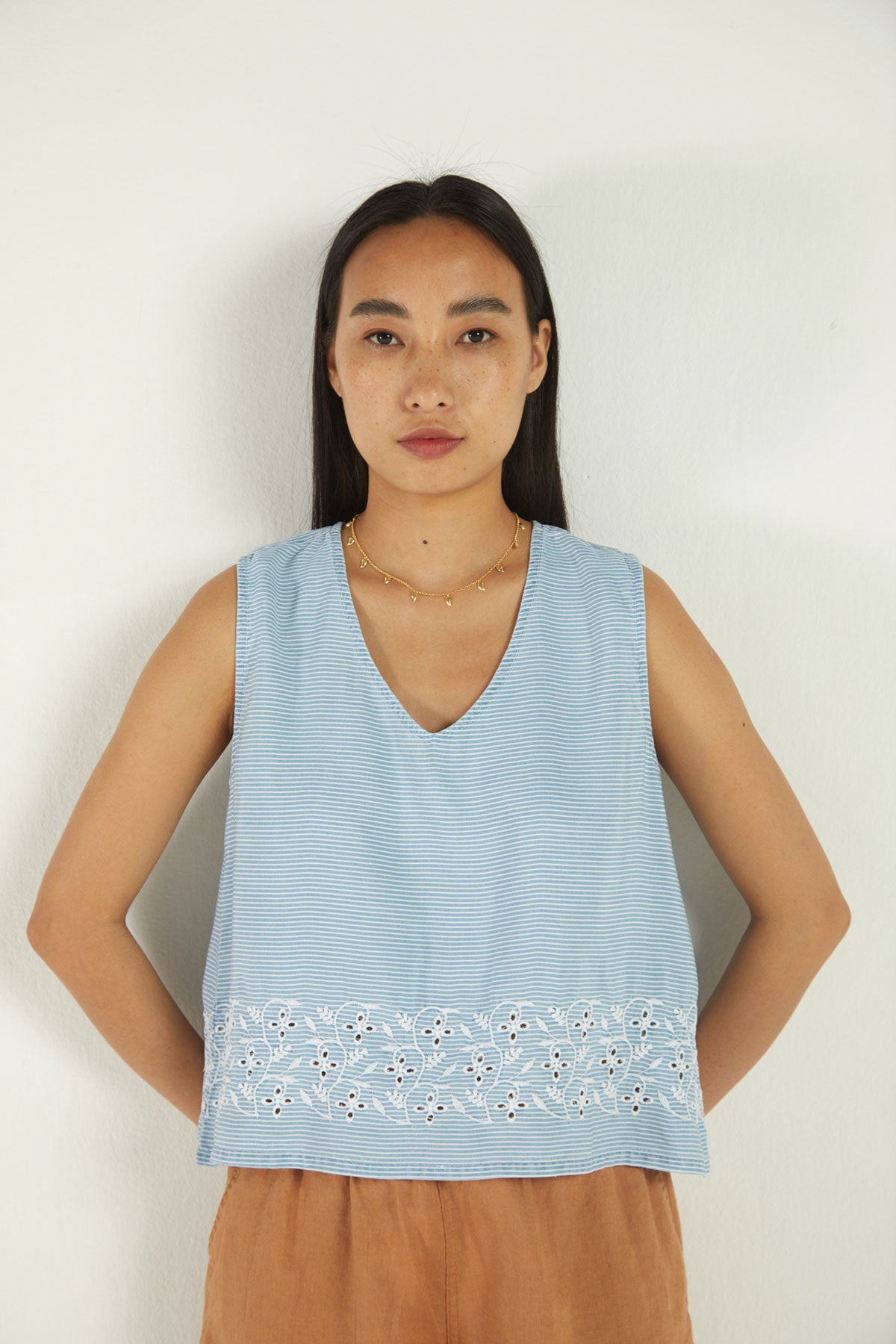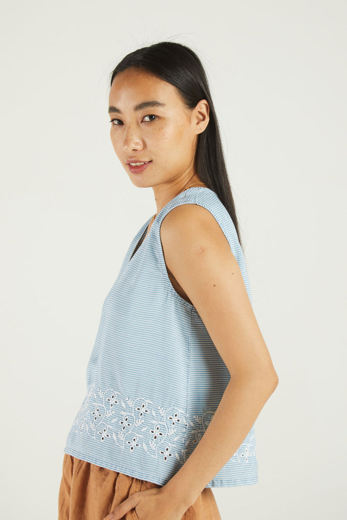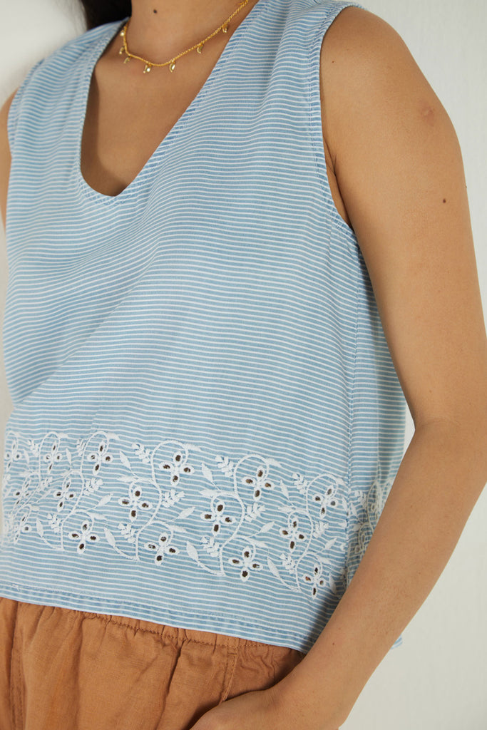 A classic sleeveless shirt, this gently cropped, flowy top is a wardrobe essential you will love to wear.