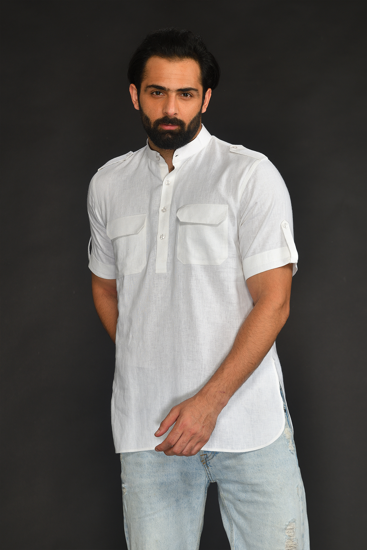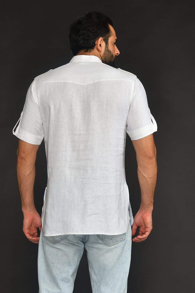 Fabric Compostion: Linen VisLining Material: 100% CottonColor: WhiteFit: RelaxedNeck Type: Collar