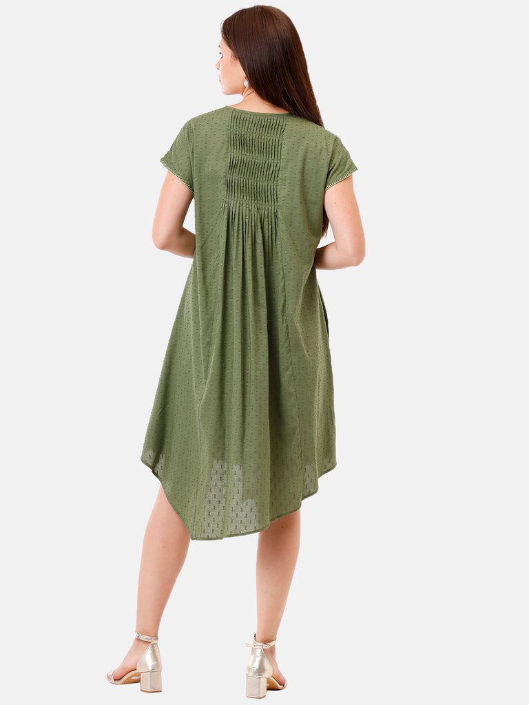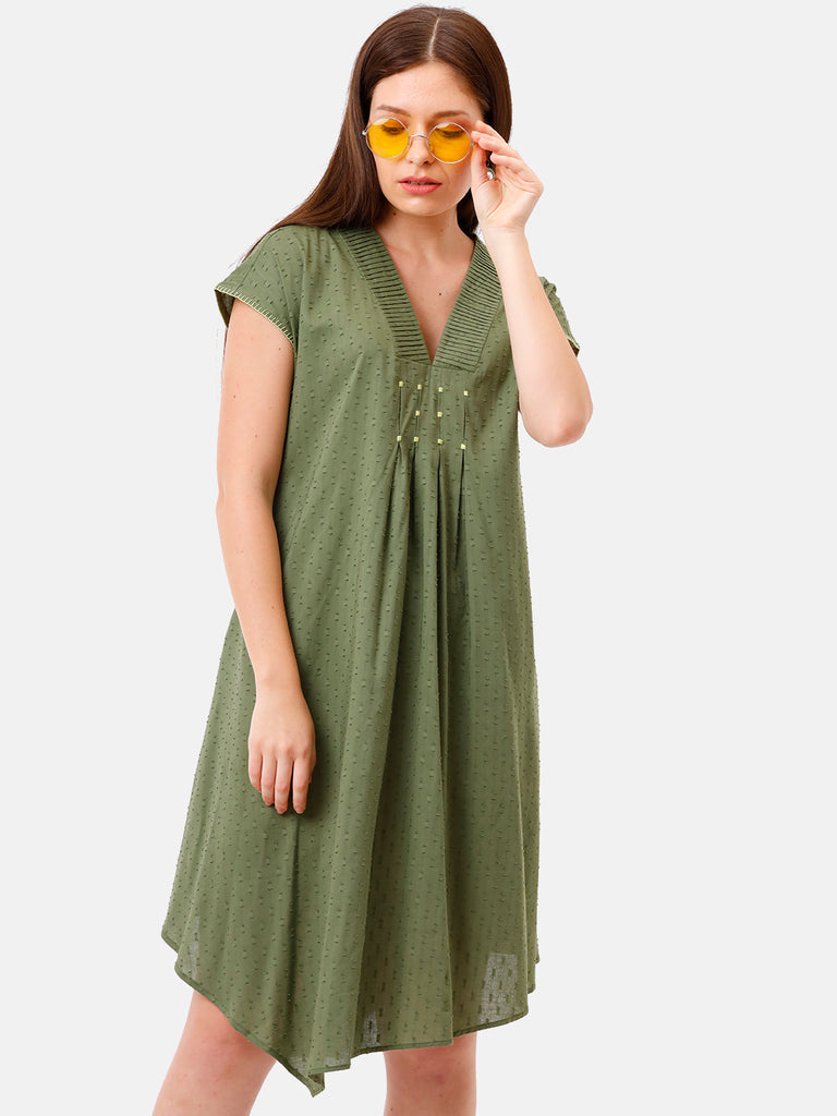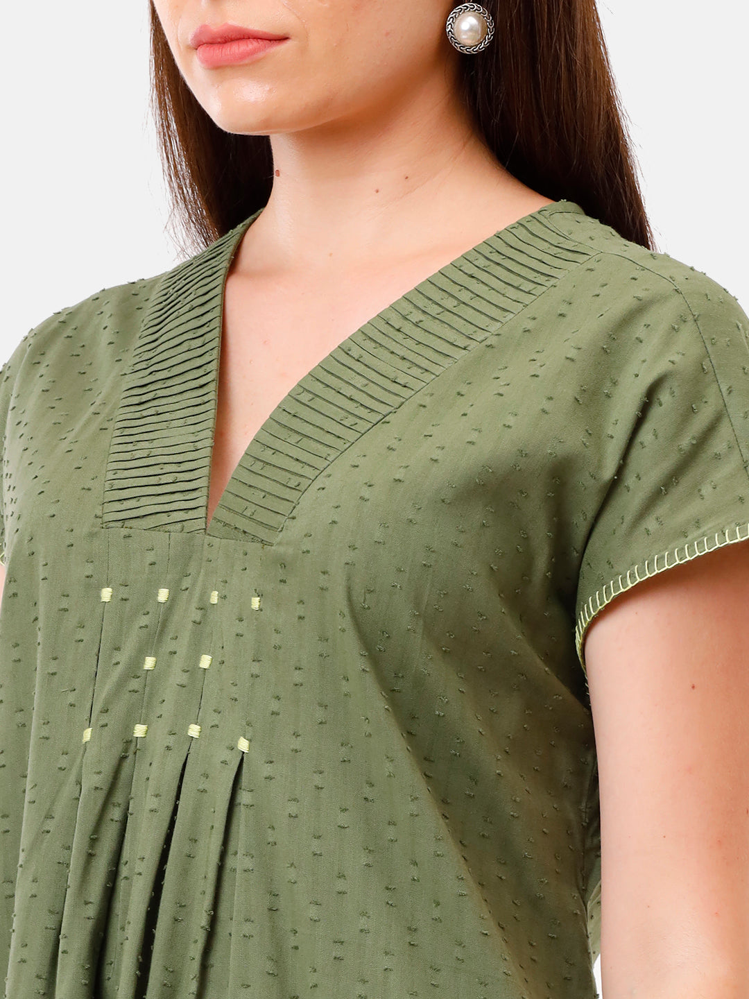 Its a loose style asymmetrical with pintuck detailing at neck and back with embroidery on inverted pleats at the centre front.