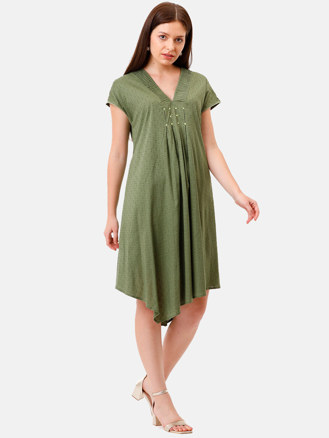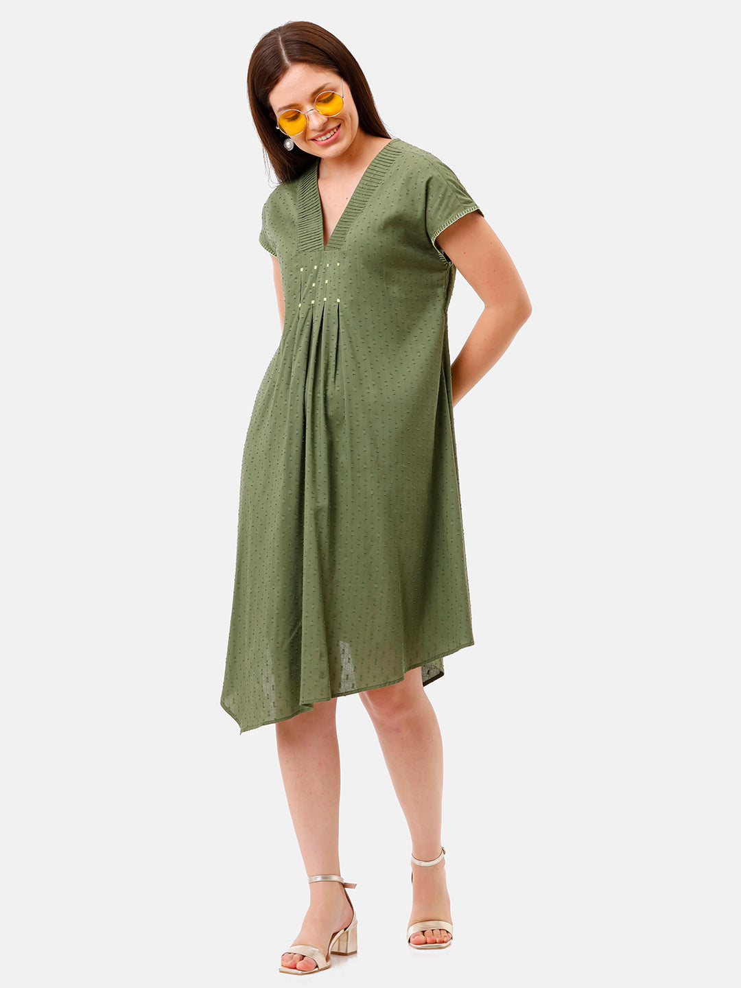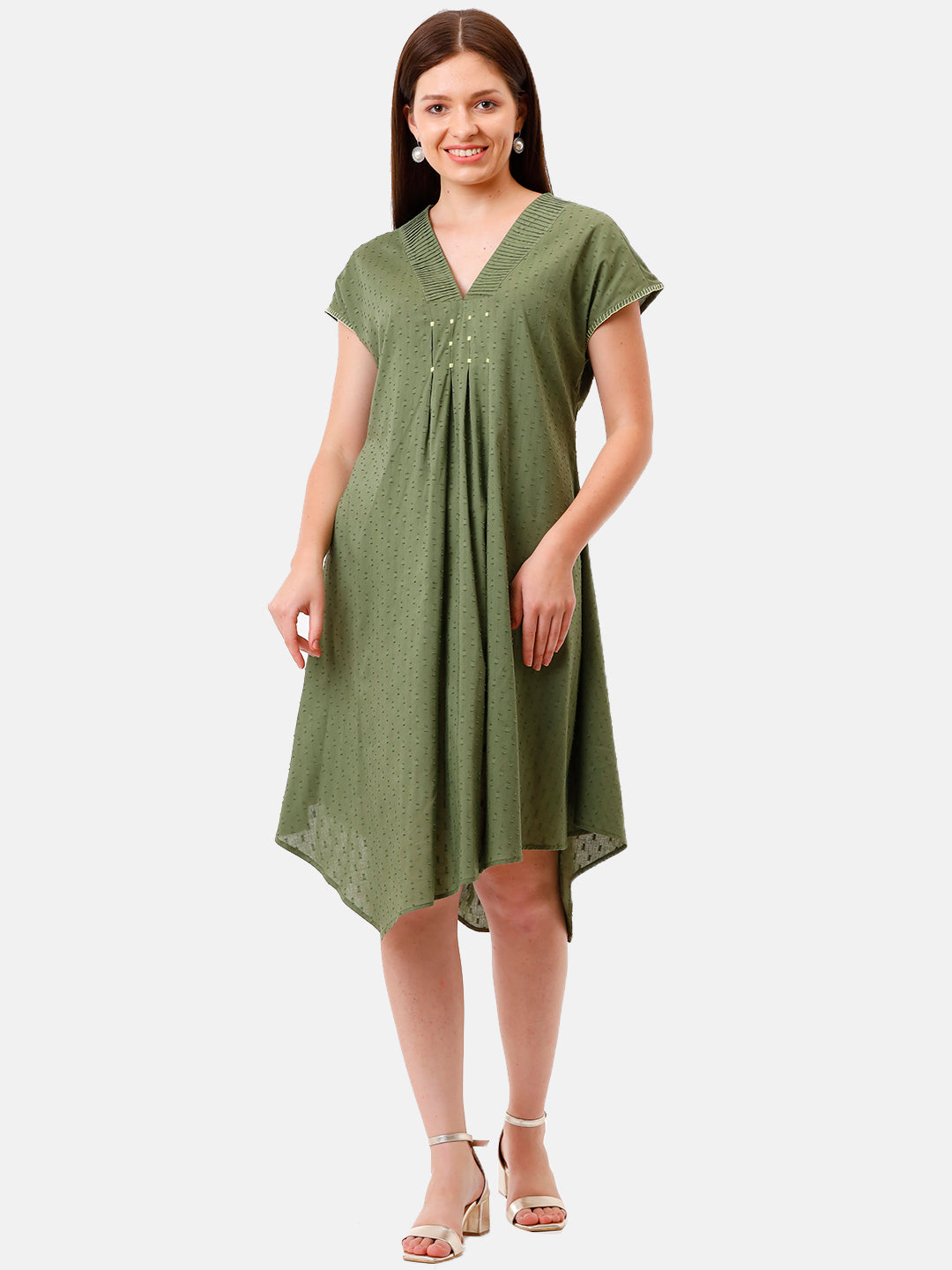 Its a loose style asymmetrical with pintuck detailing at neck and back with embroidery on inverted pleats at the centre front.