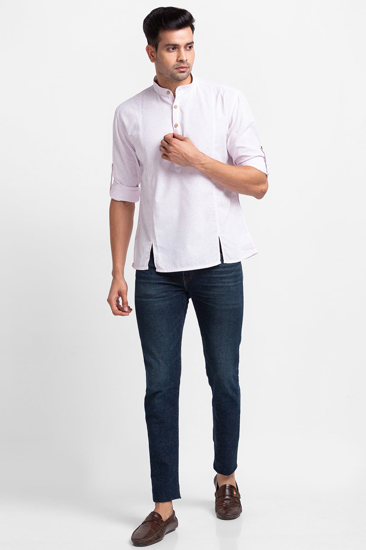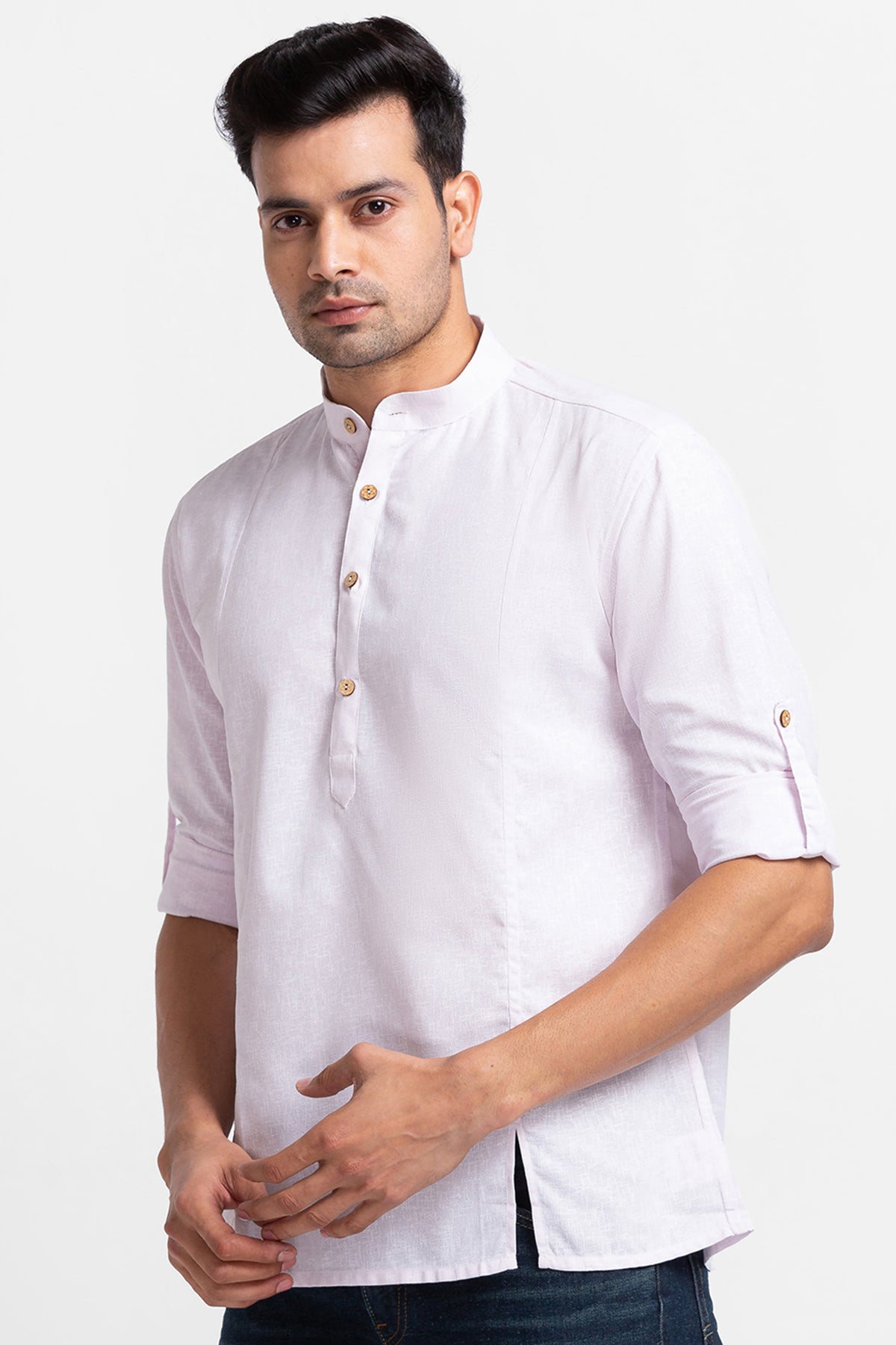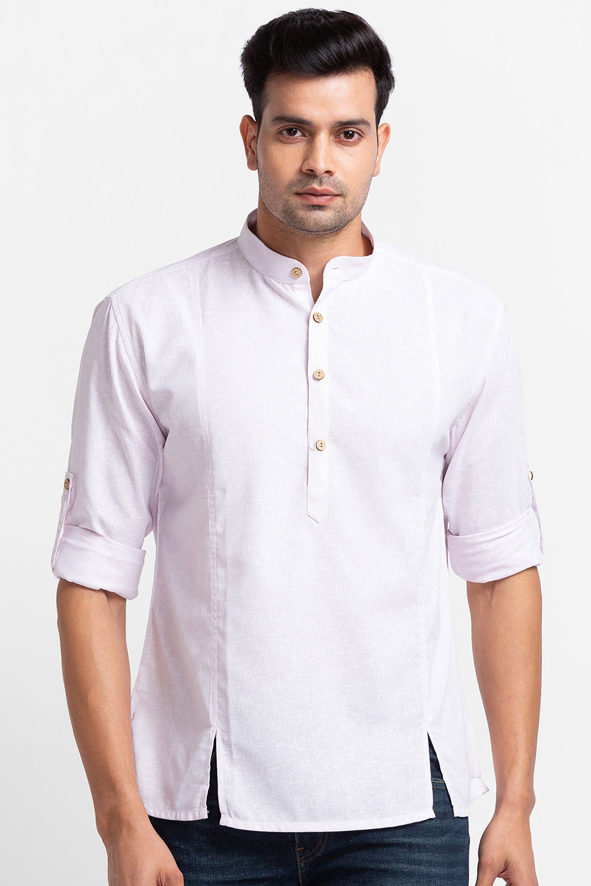 Baby Pink Short Kurta with Open Pleates on Front Panel.