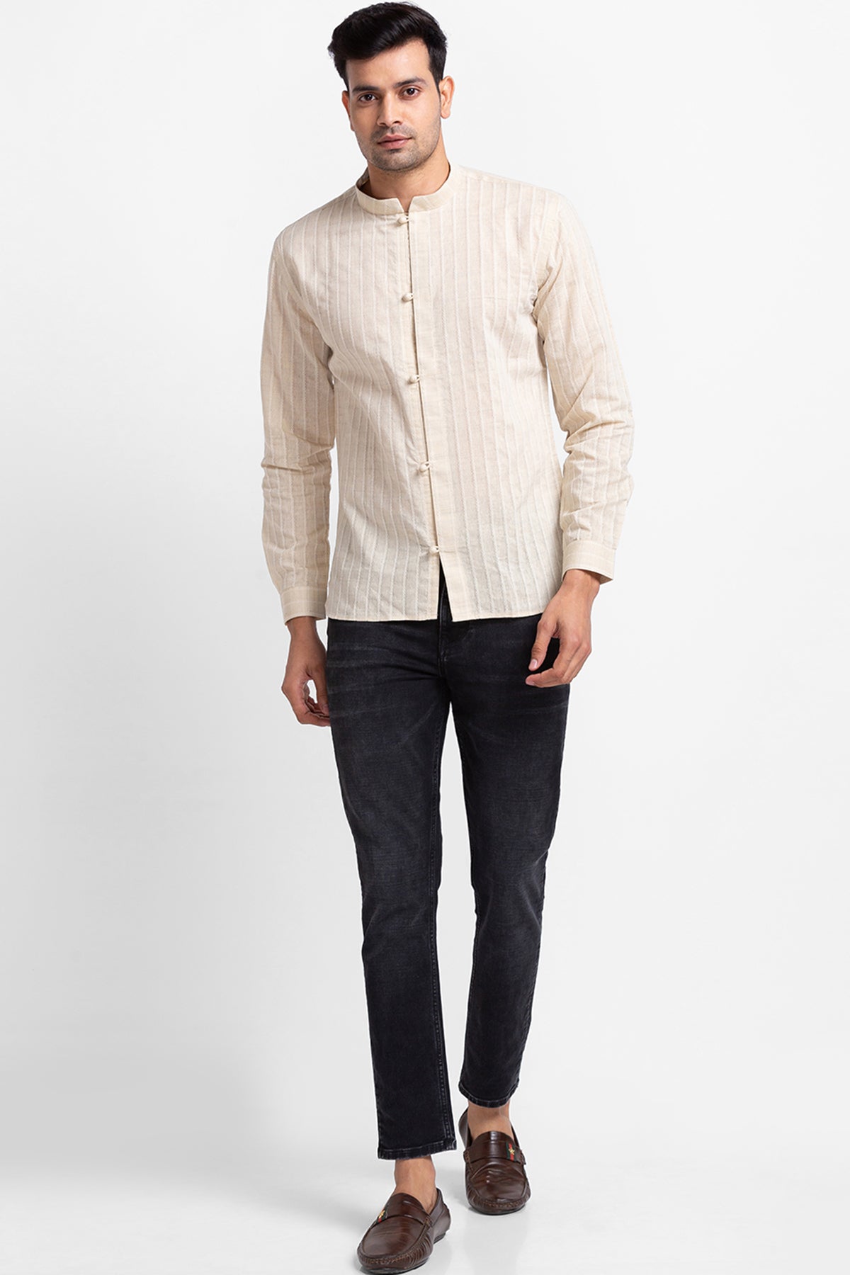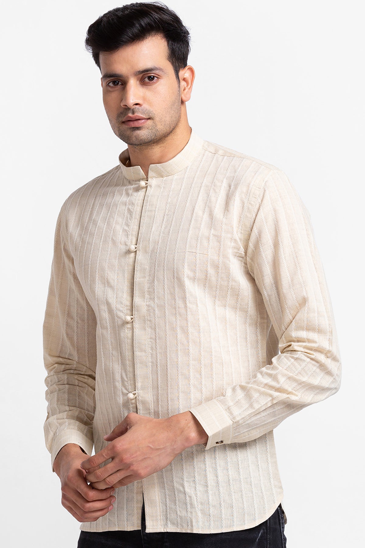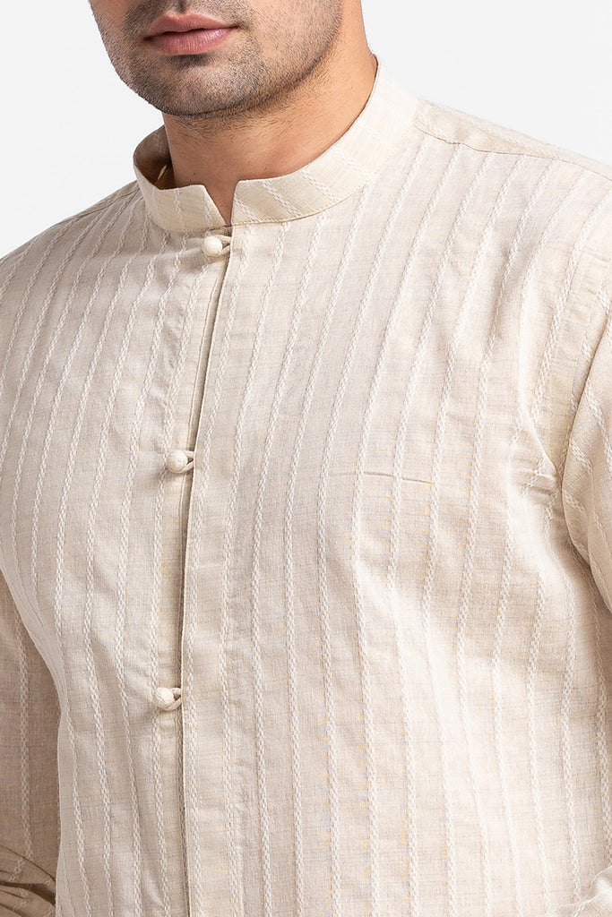 Beige Shirt with Potli Button on Placket.