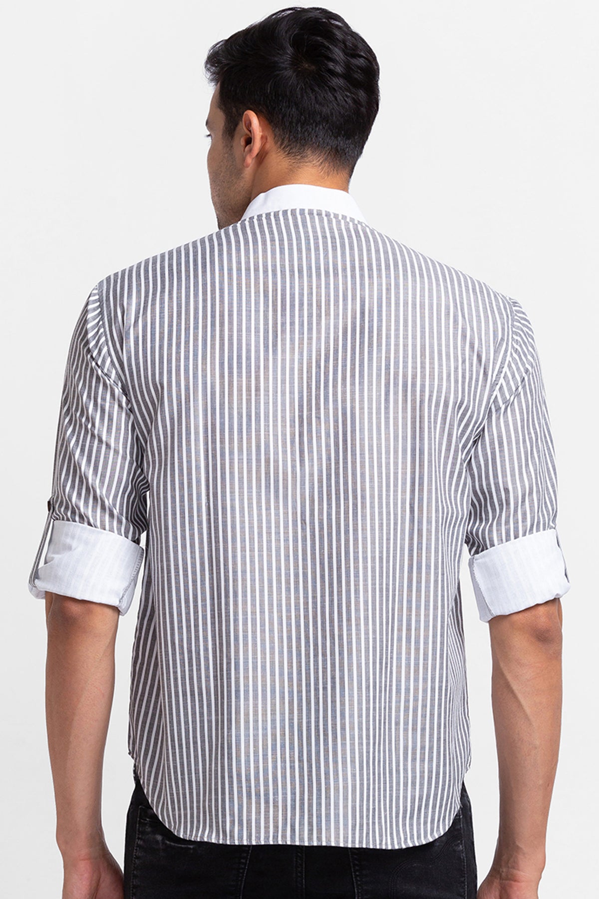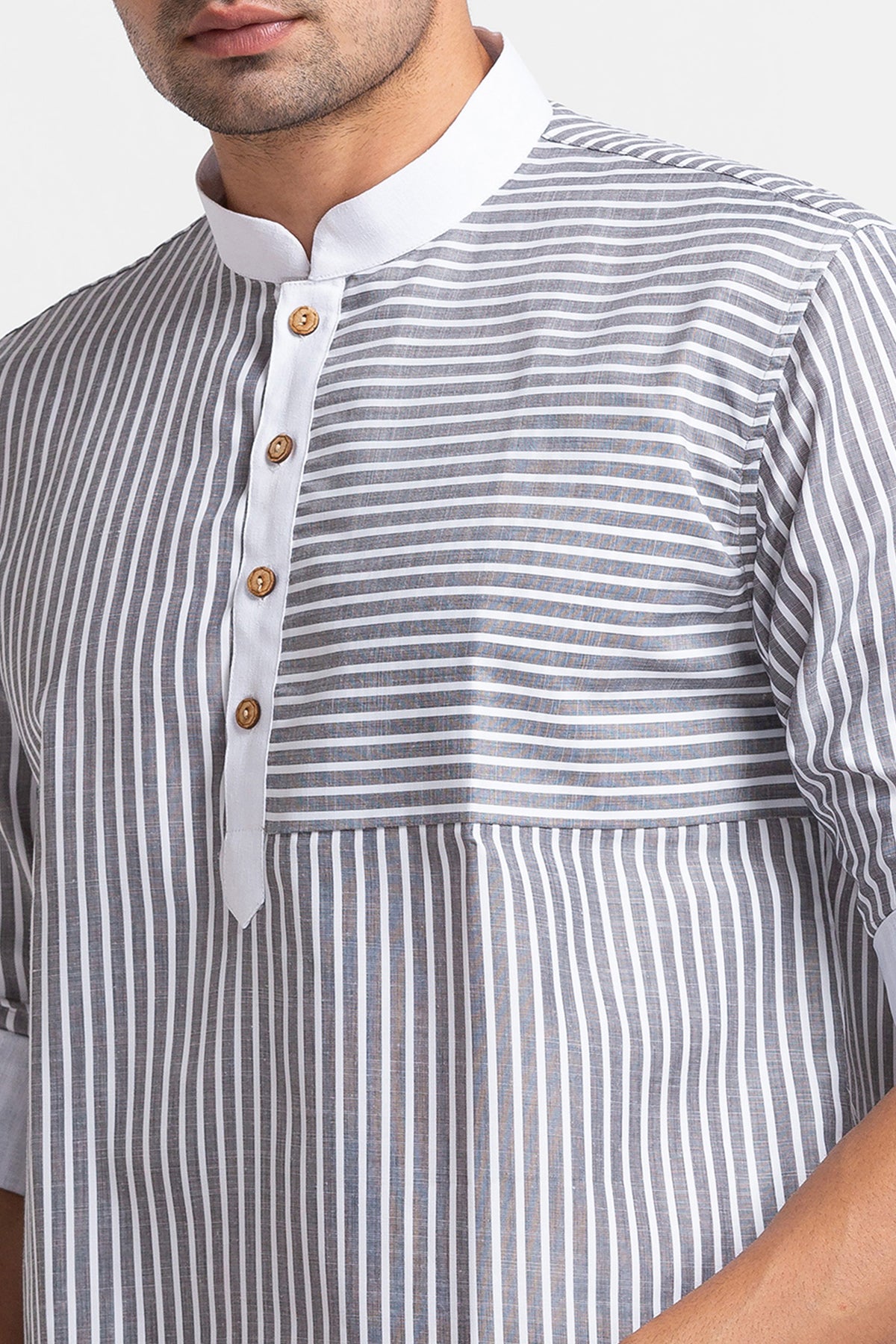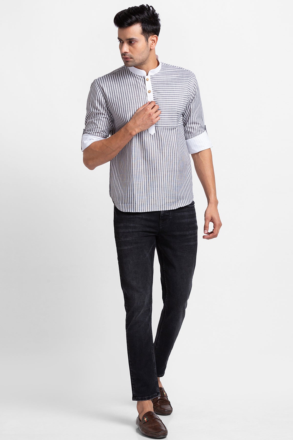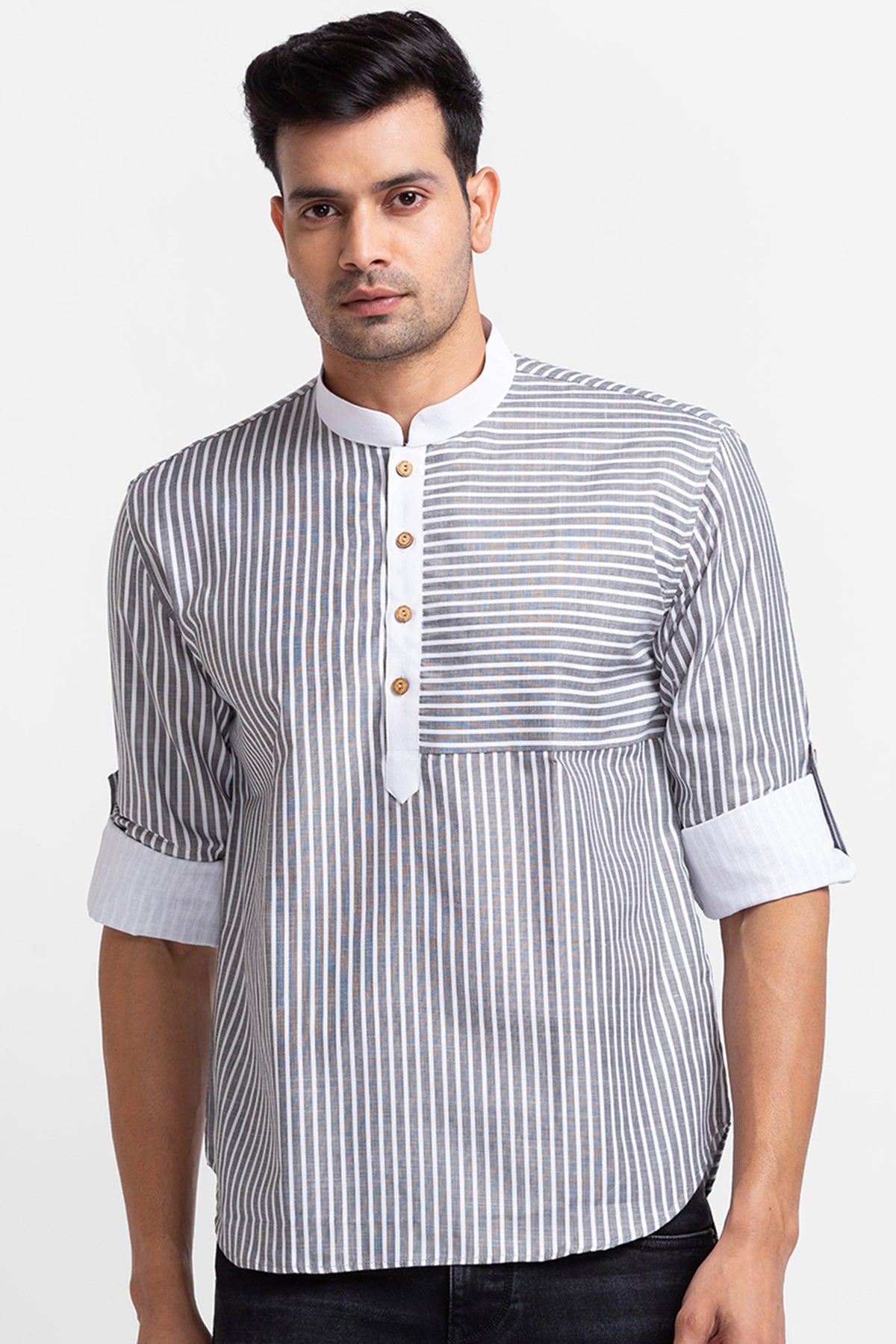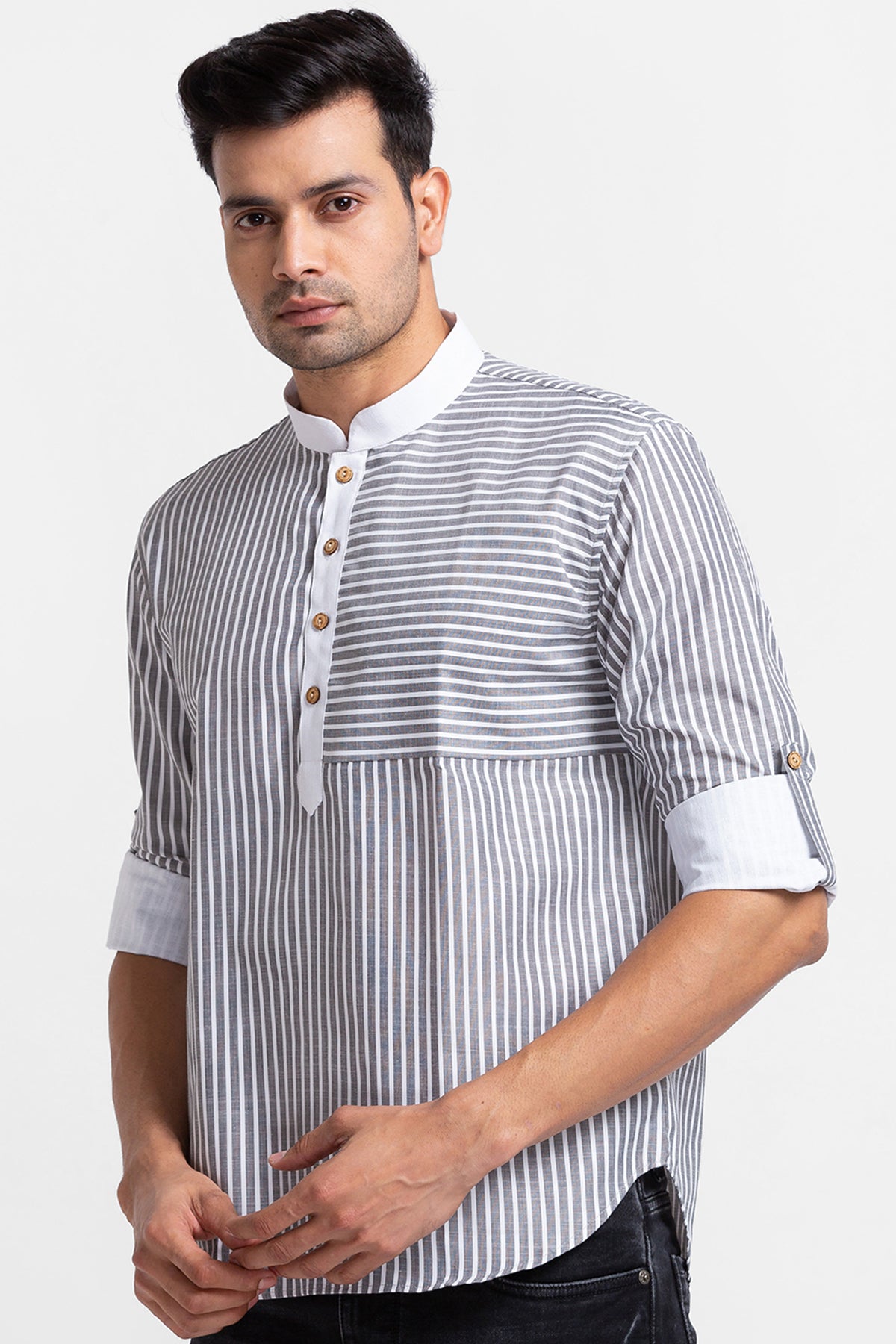 Vertical Stripe Biker's Kurta with contrast fabric in inner collar and inner placket.