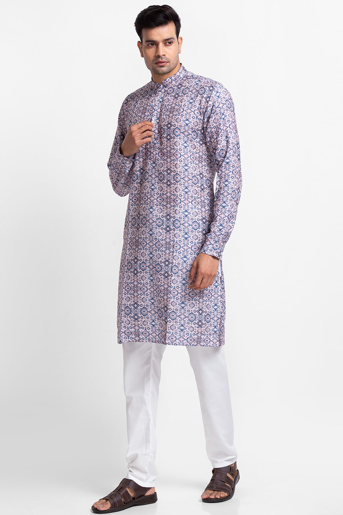 Printed Kurta with Contrast Fabric used on Inner collar, Placket and Cuff.
