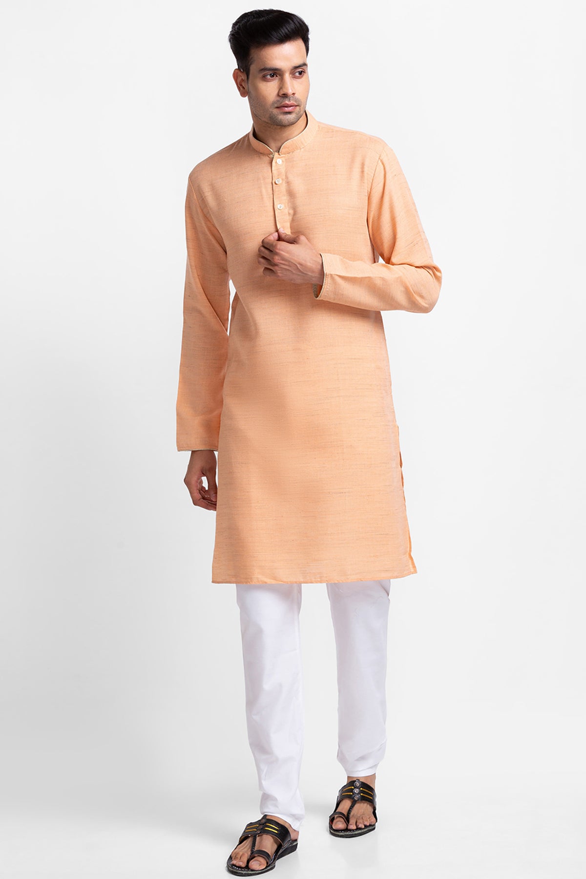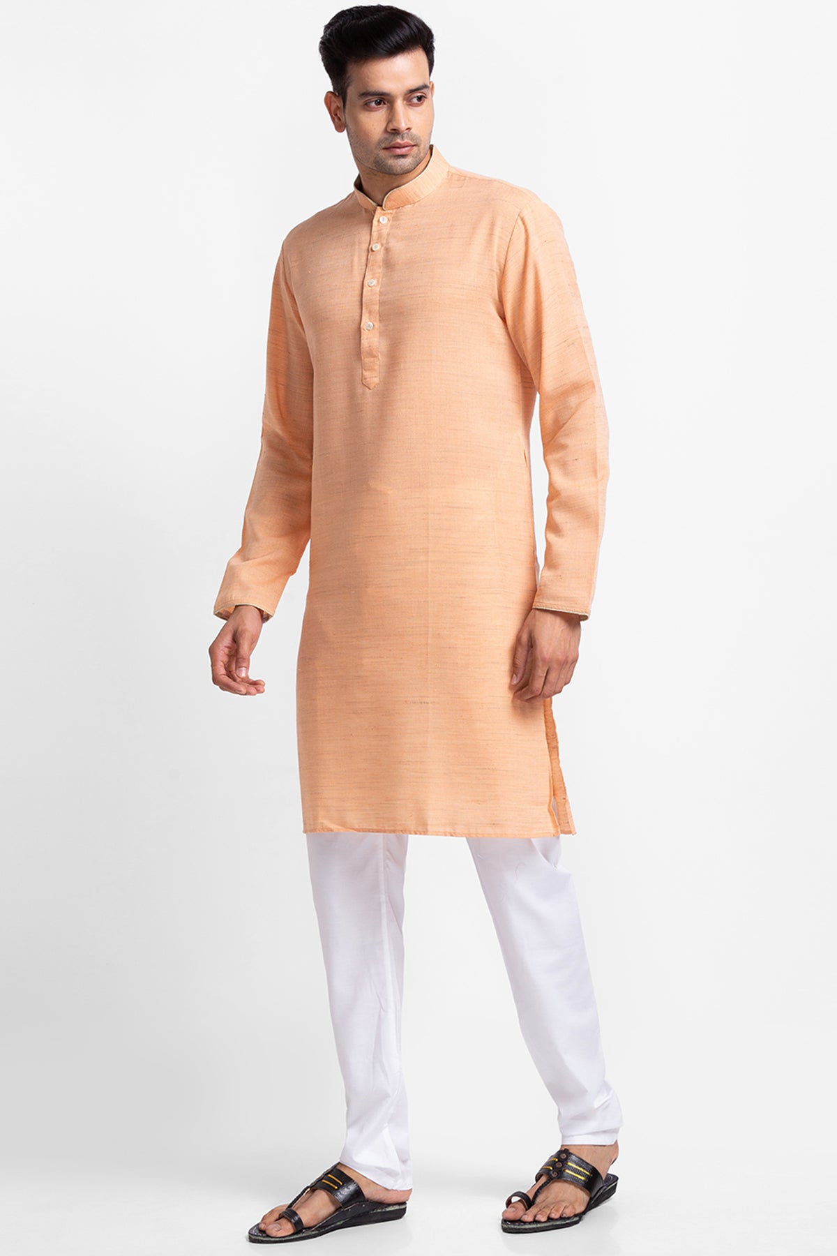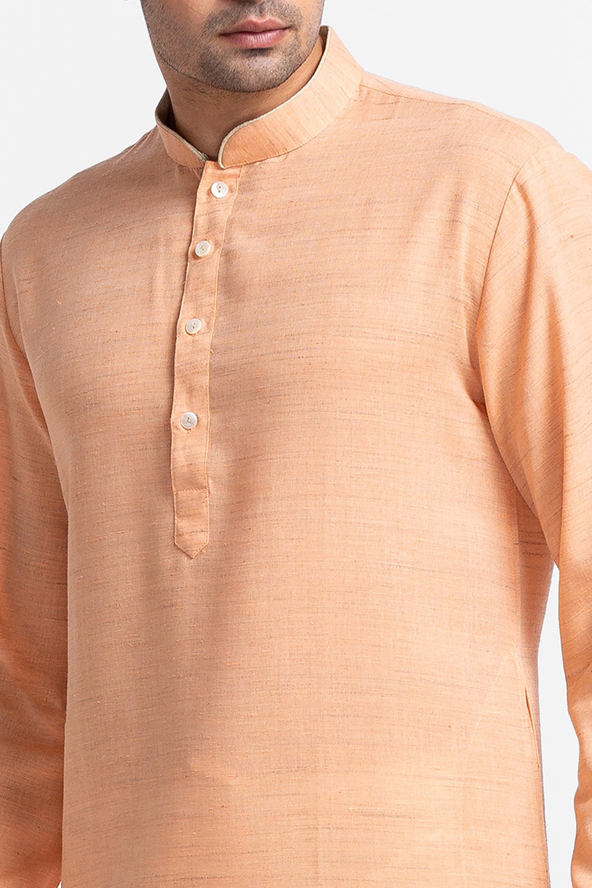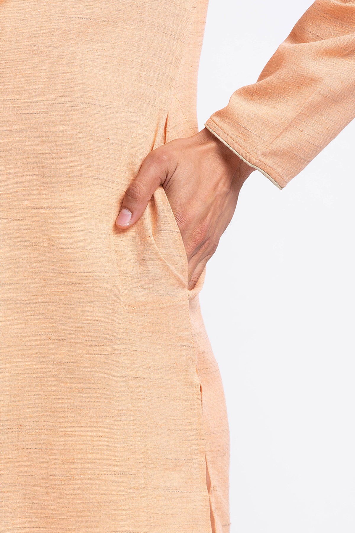 Khadi Look Fabric with Dori Piping on Collar, Placket and Cuff.
