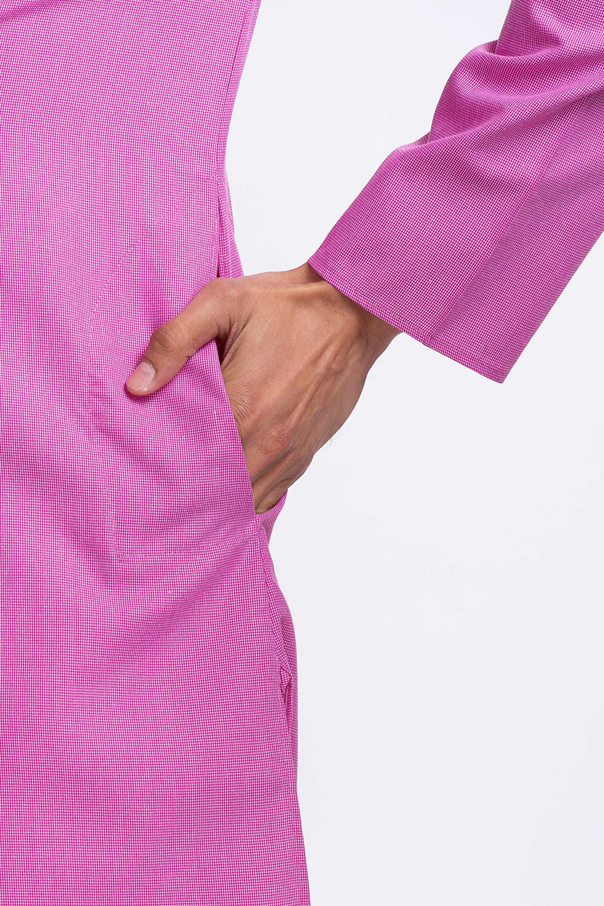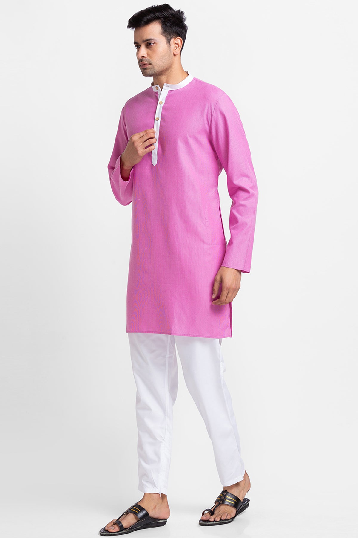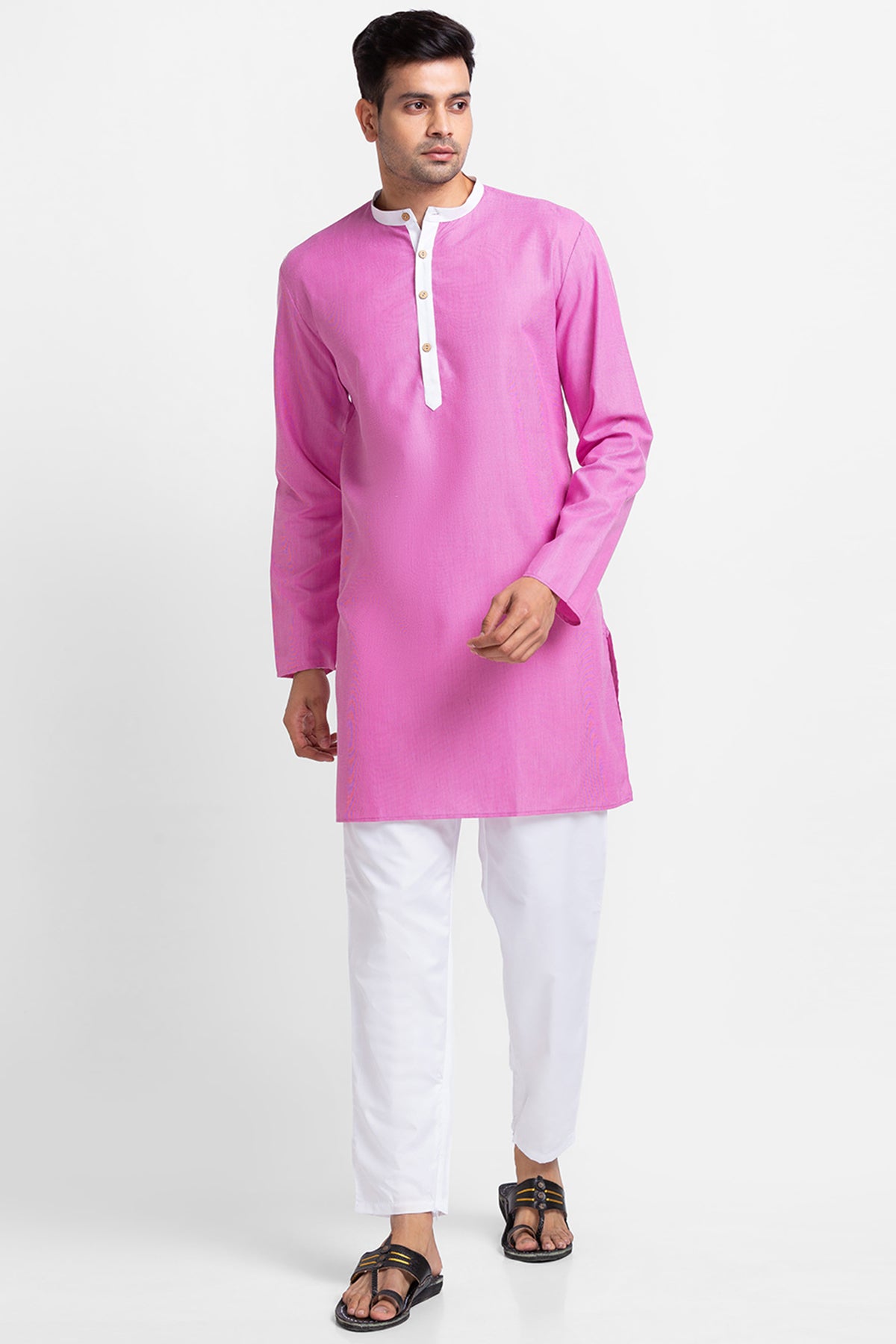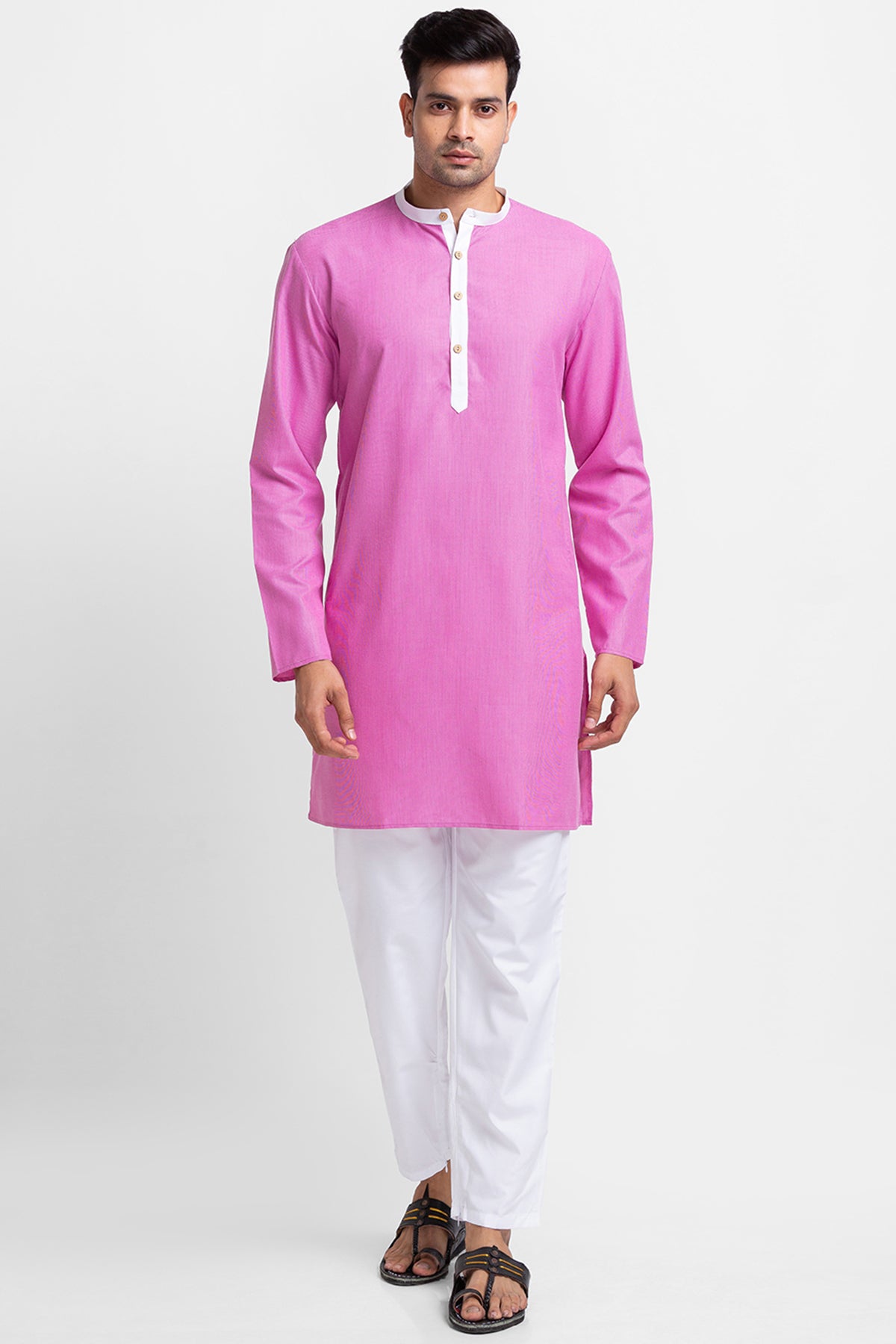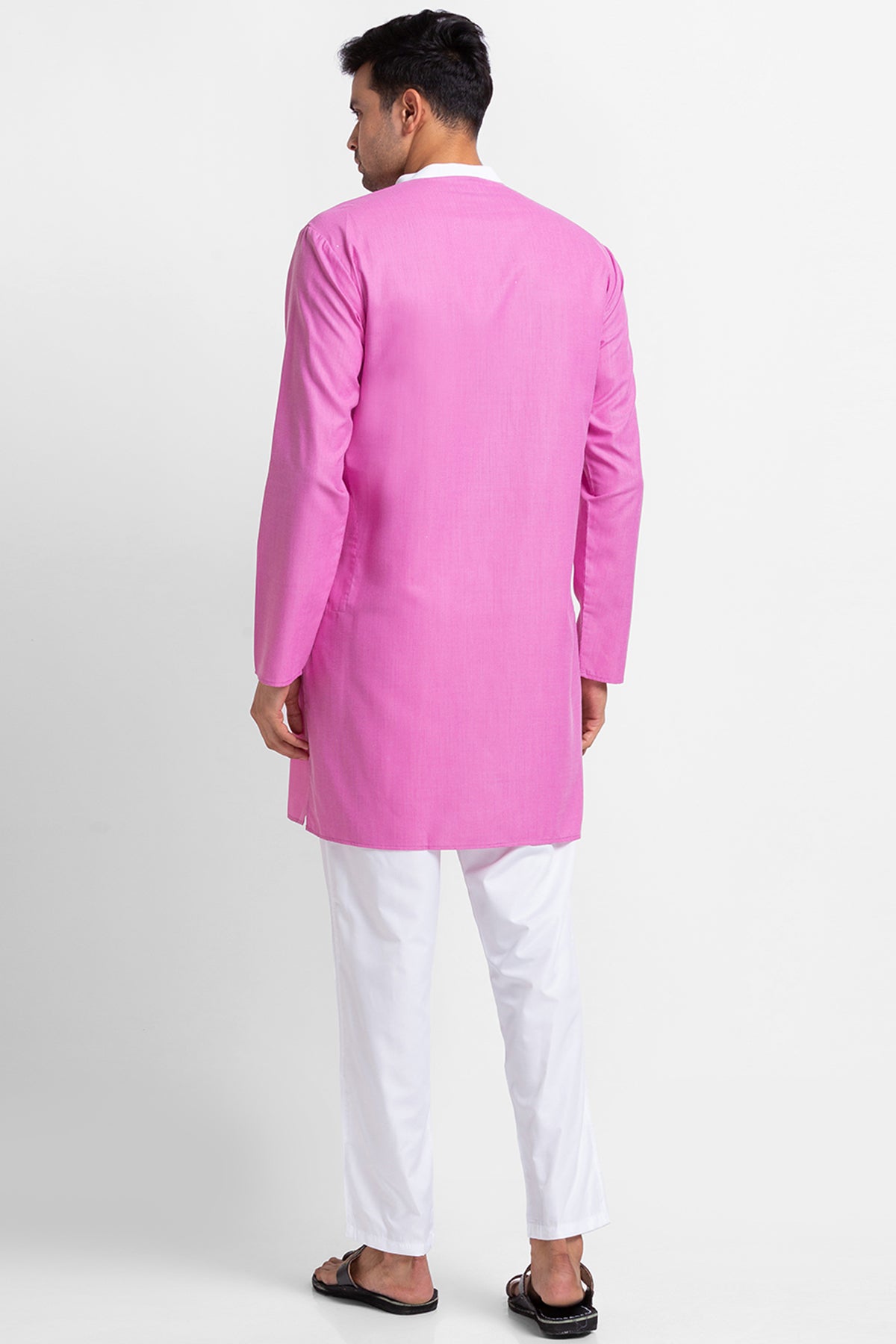 Pink Above Knee Length Kurta with Contrast Collar and Placket.