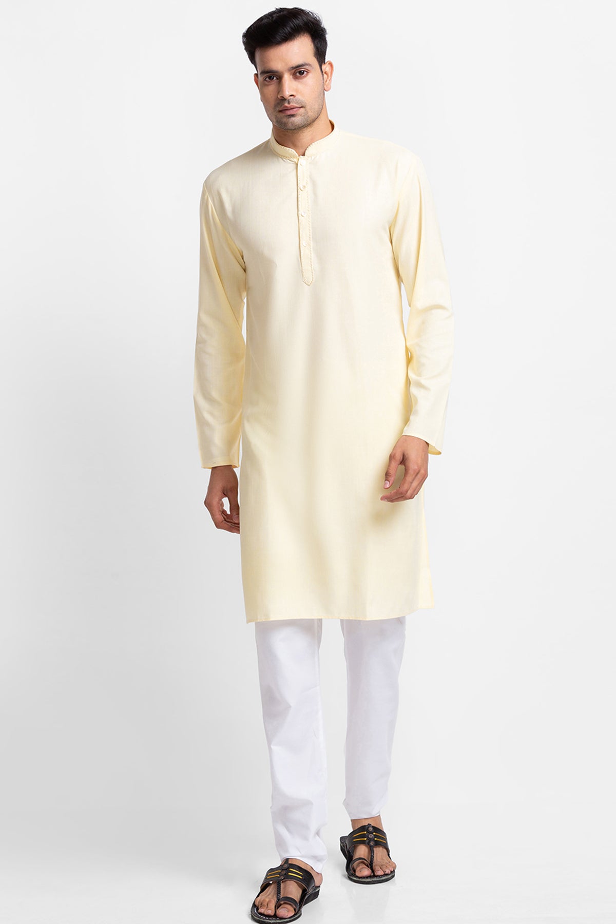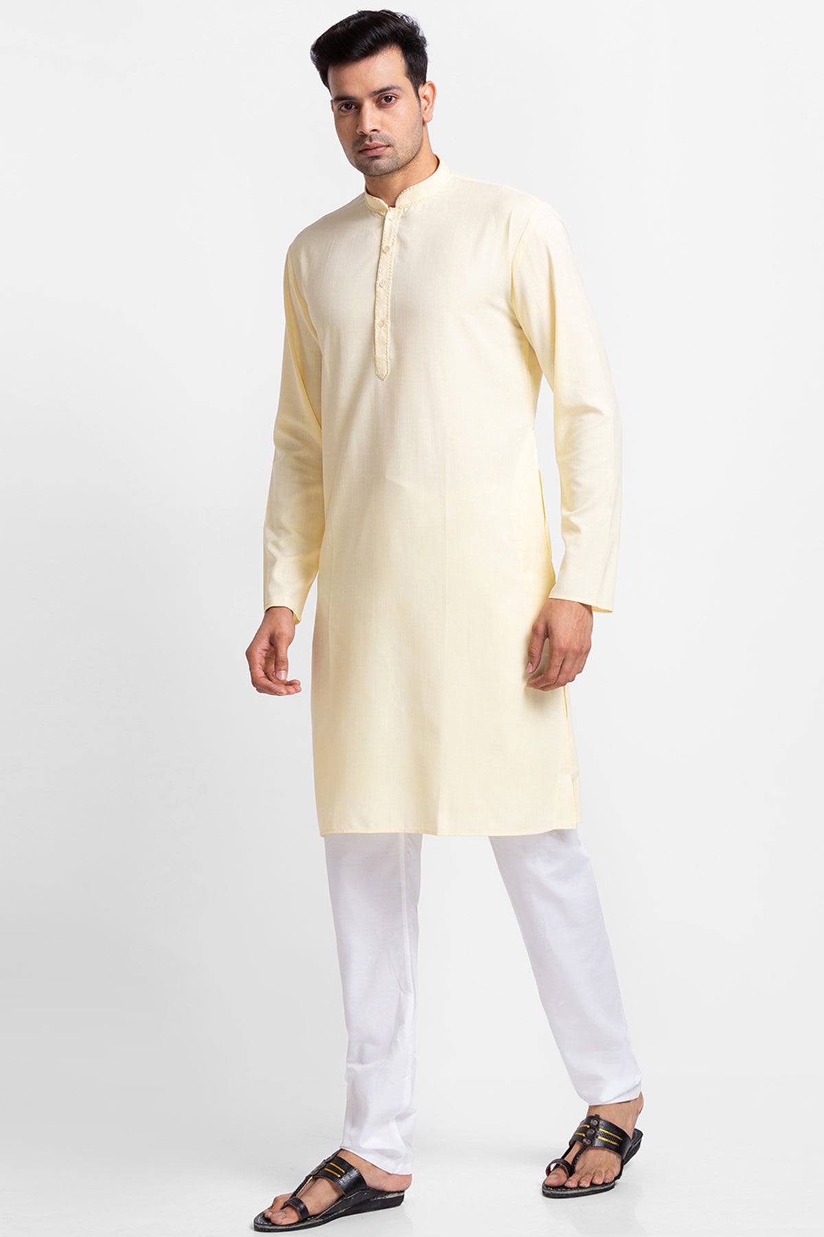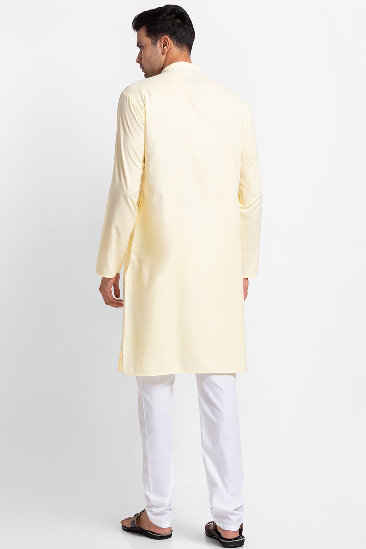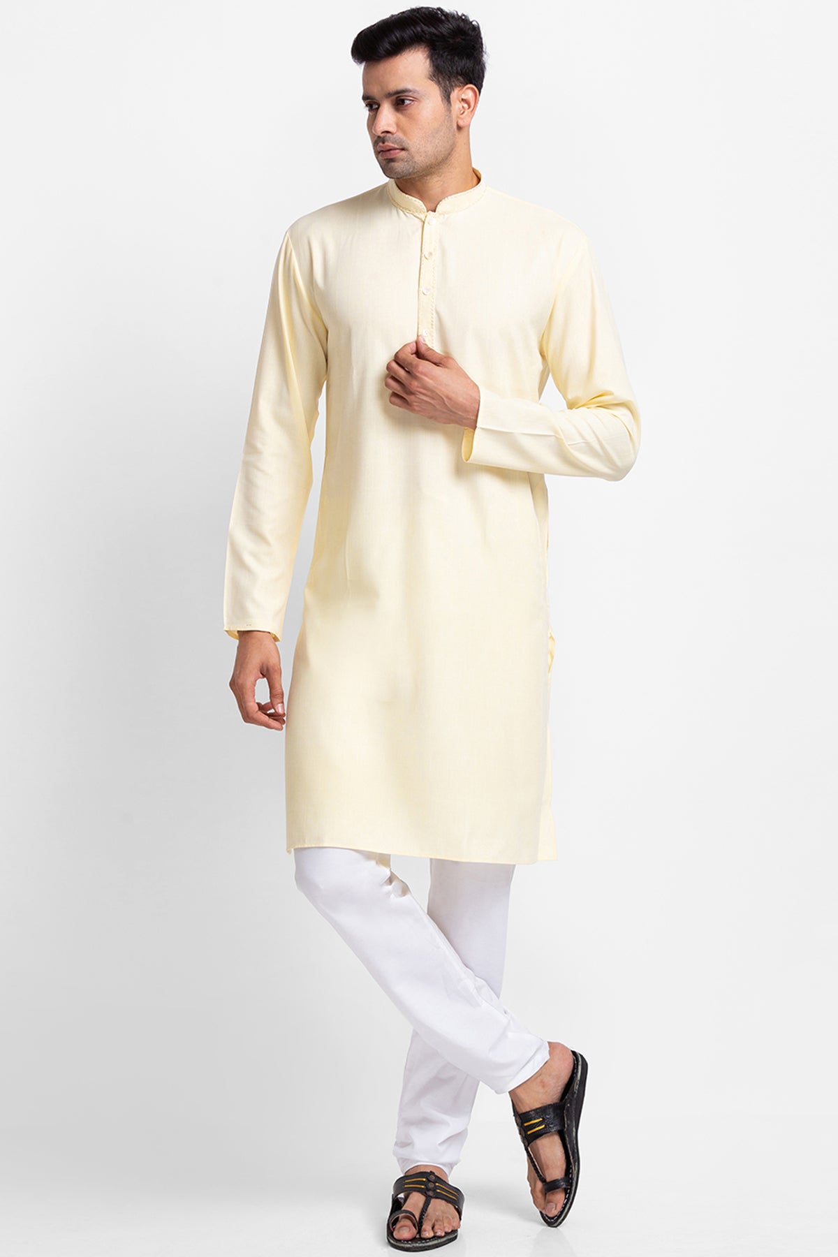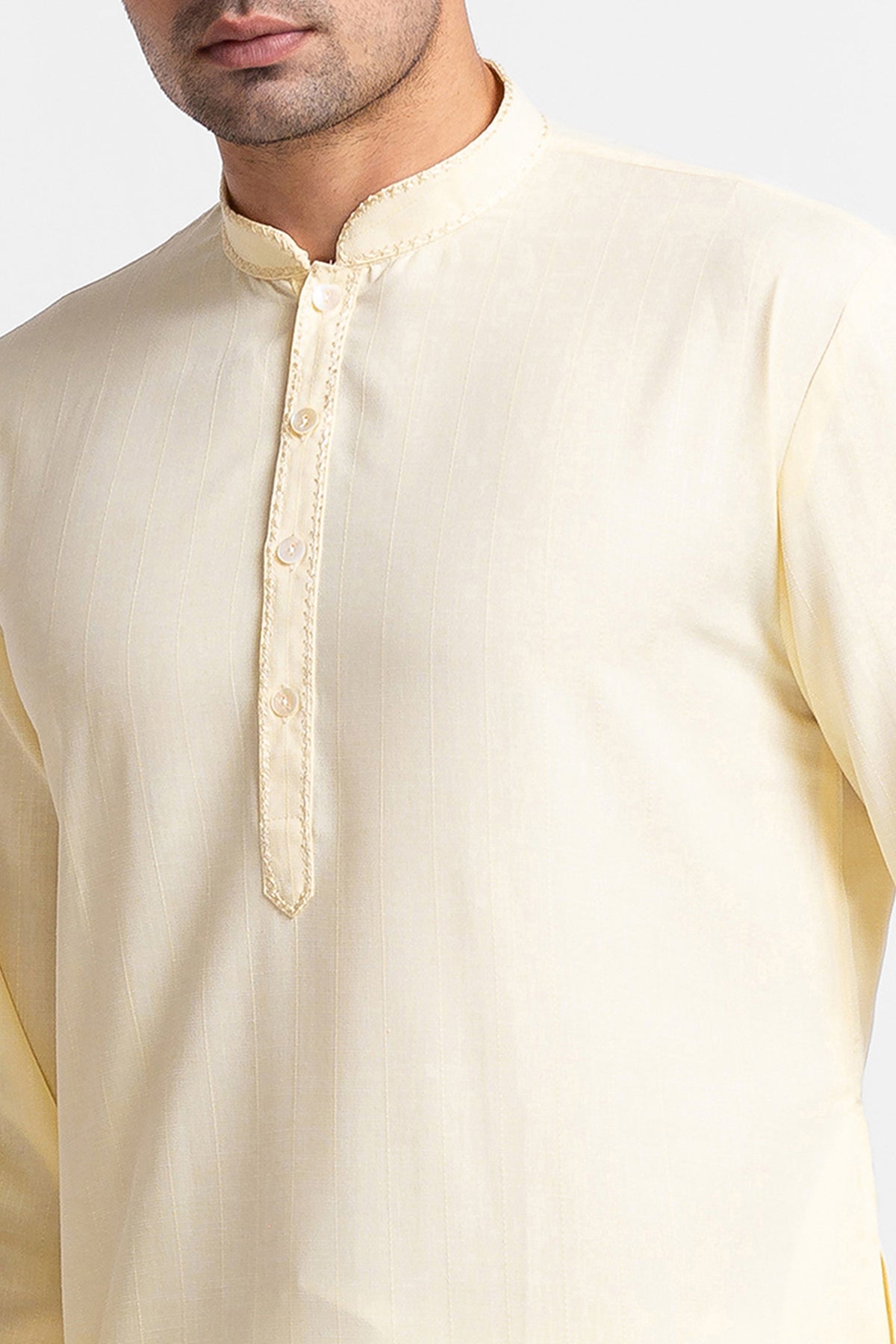 Yellow Dyed Stripe Kurta with Churidar