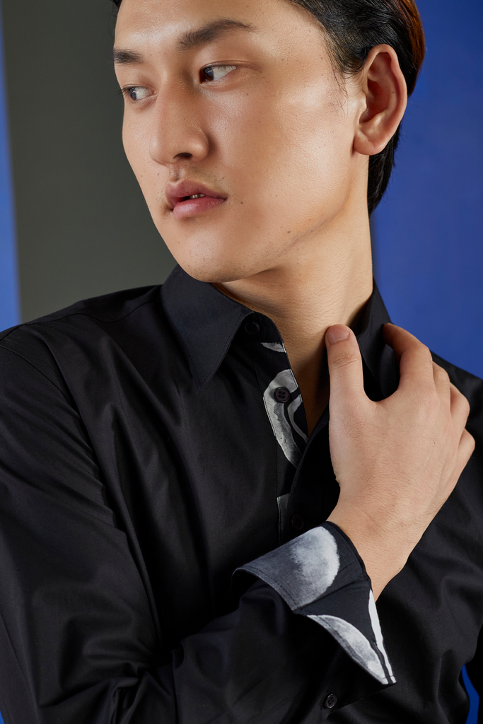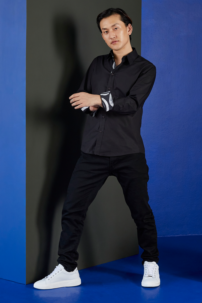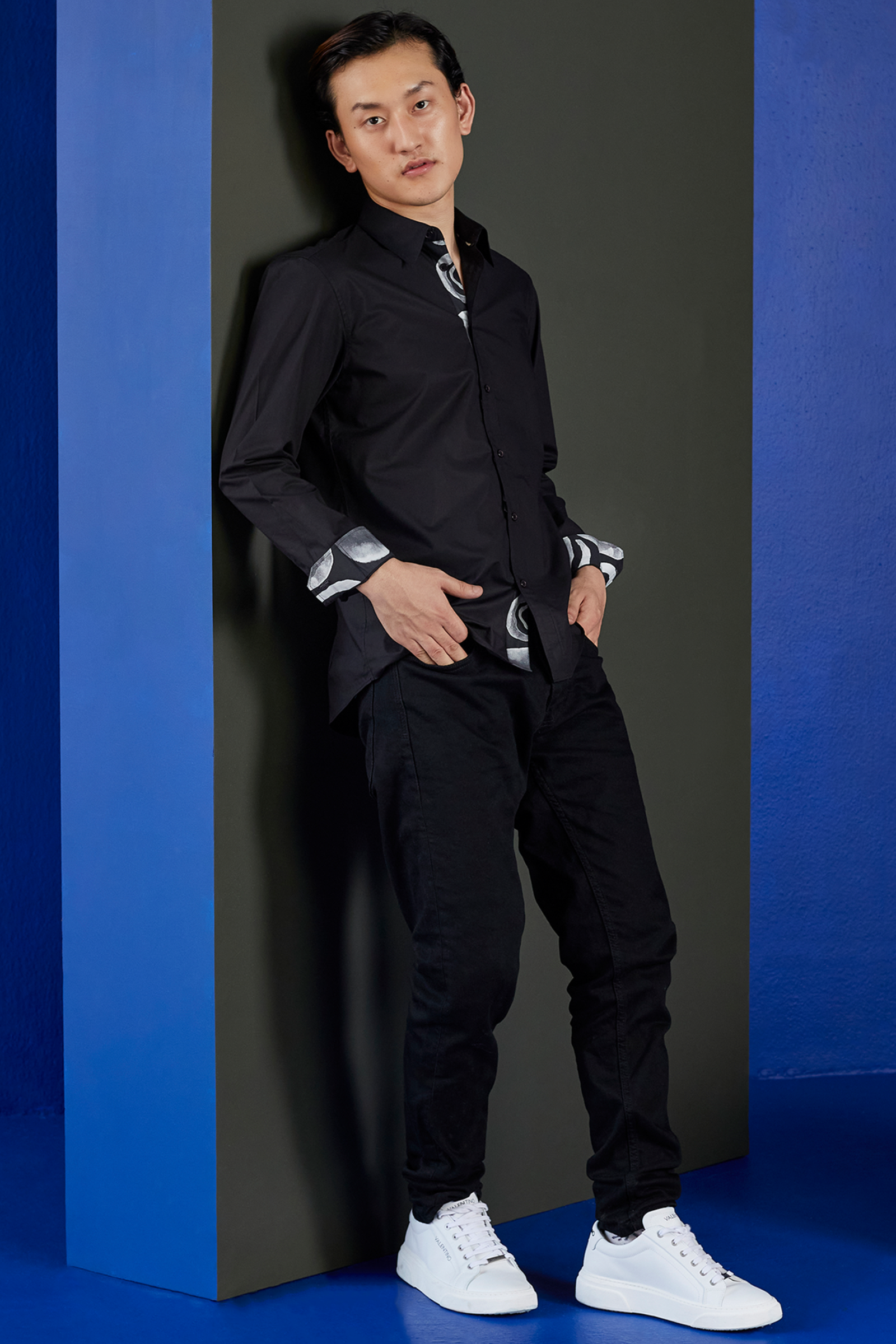 Redefining the classic silhouette, the Kygo shirt in black is styled with a contrasting cuff featuring our signature black Head In The clouds print.