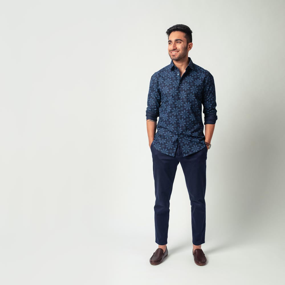 With prints taking mainstage this season, a floral printed shirt is an absolute wardrobe essential. The monochromatic print design element adds an interesting character to this shirt, making it effortlessly dapper. Style it with a pair of washed denims for a casual look or dress it up with a pair of classic navy chinos, all while embracing the attention it brings your way.