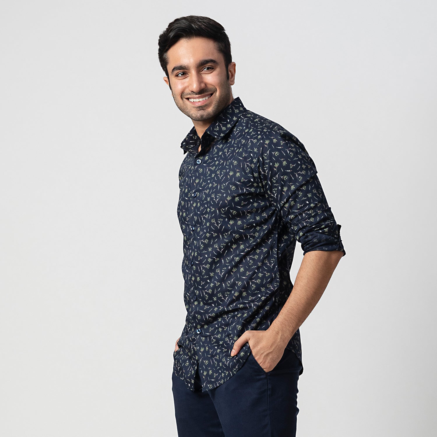 With floral prints being deemed basic modern wardrobe essentials, this printed shirt boasts an added advantage. While the nature of the print makes a statement of its own, the true beauty of this shirt lies in the nature of the cotton/modal blended fabric that enhances its exclusivity, owing to an extremely light-weight, soft and smooth finish, making it not only stylish but supremely comfortable.