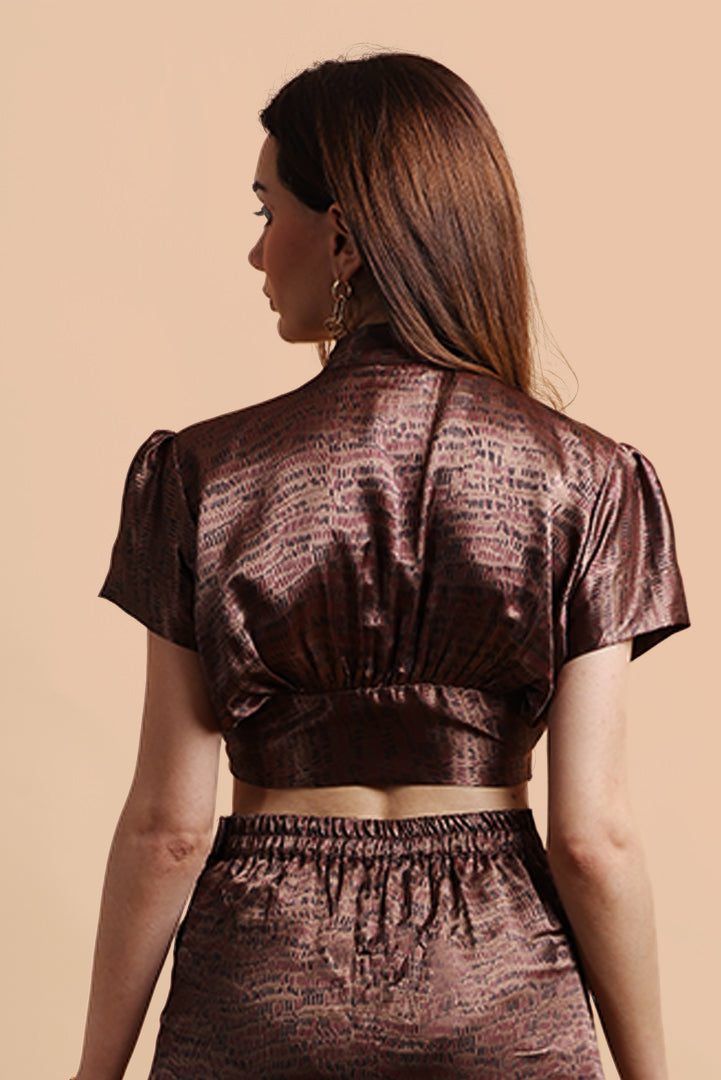 Tie knot collared top. Available in plus sizes.
