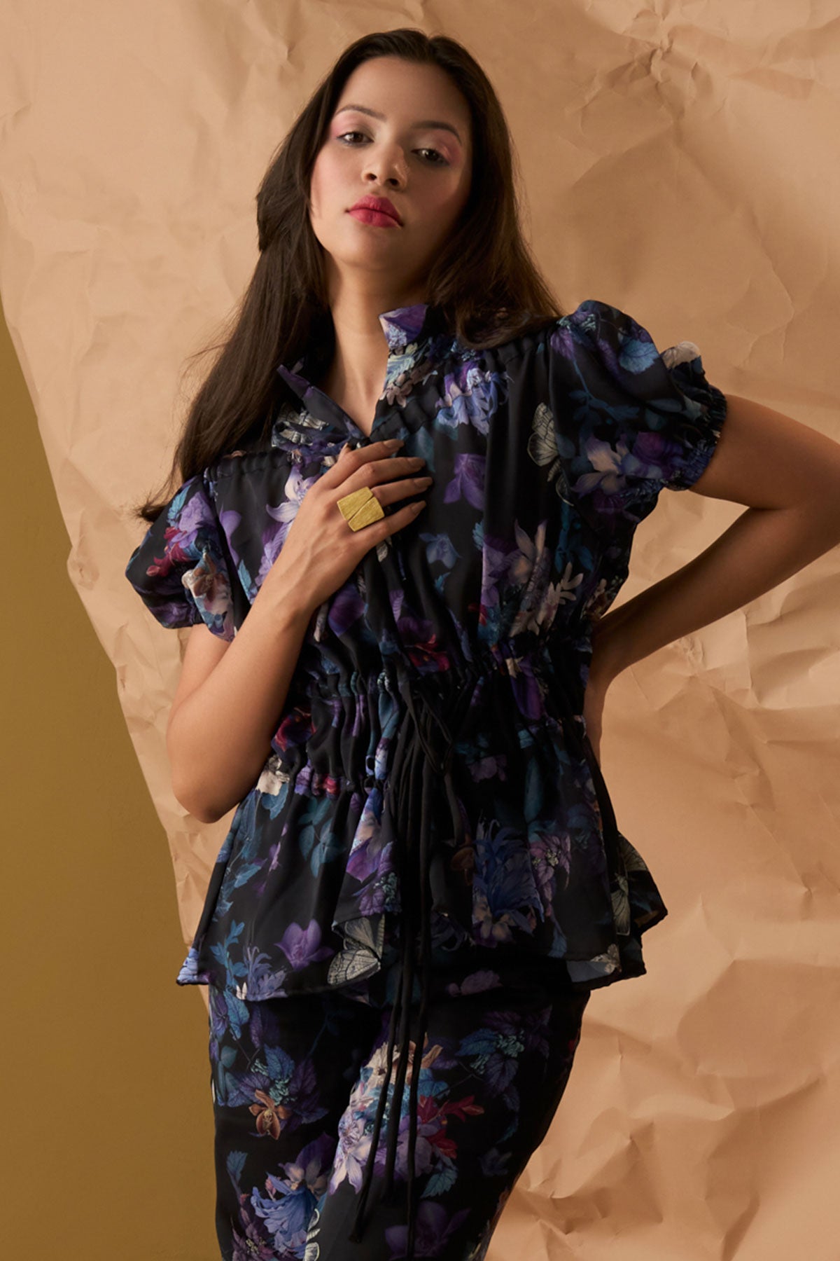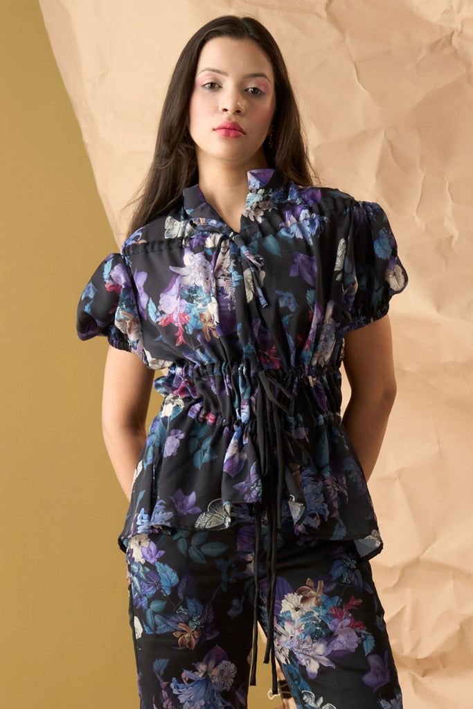 Top with front zip opening creating a beautiful fit in layers. The tie-ups help to adjust the gathers making it perfect for casual day to night wear. Available in plus size also.