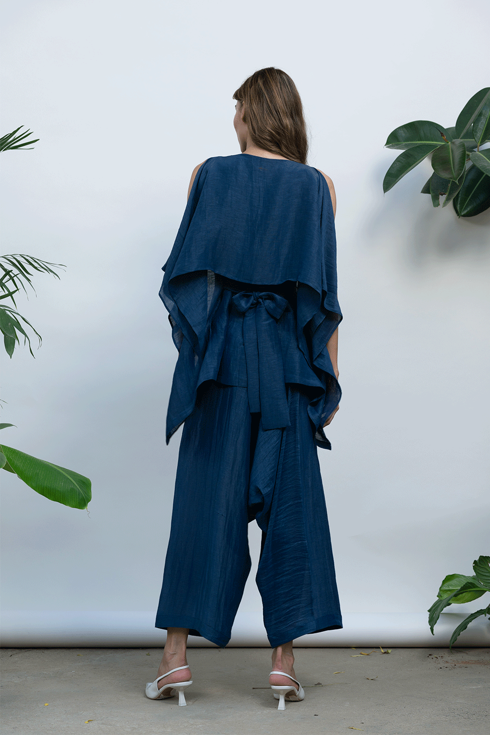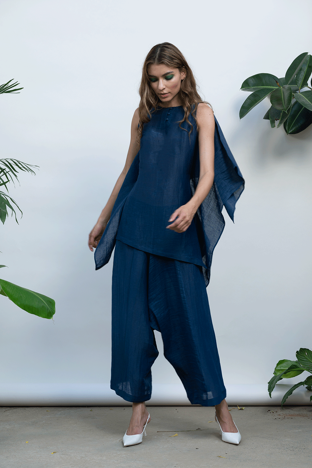 Ankle length drop crotch solid trouser. Easy to wear with side zip opening.