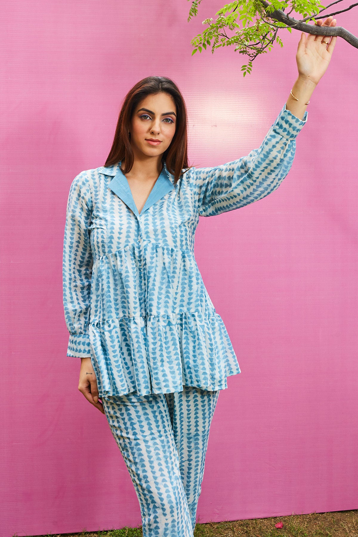 Flaired top & pants co-ord set.