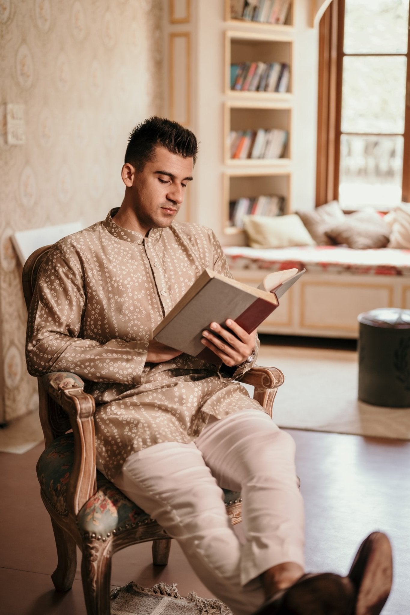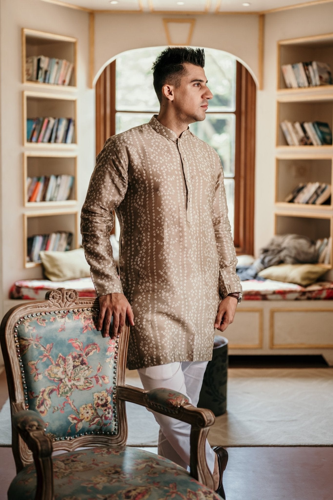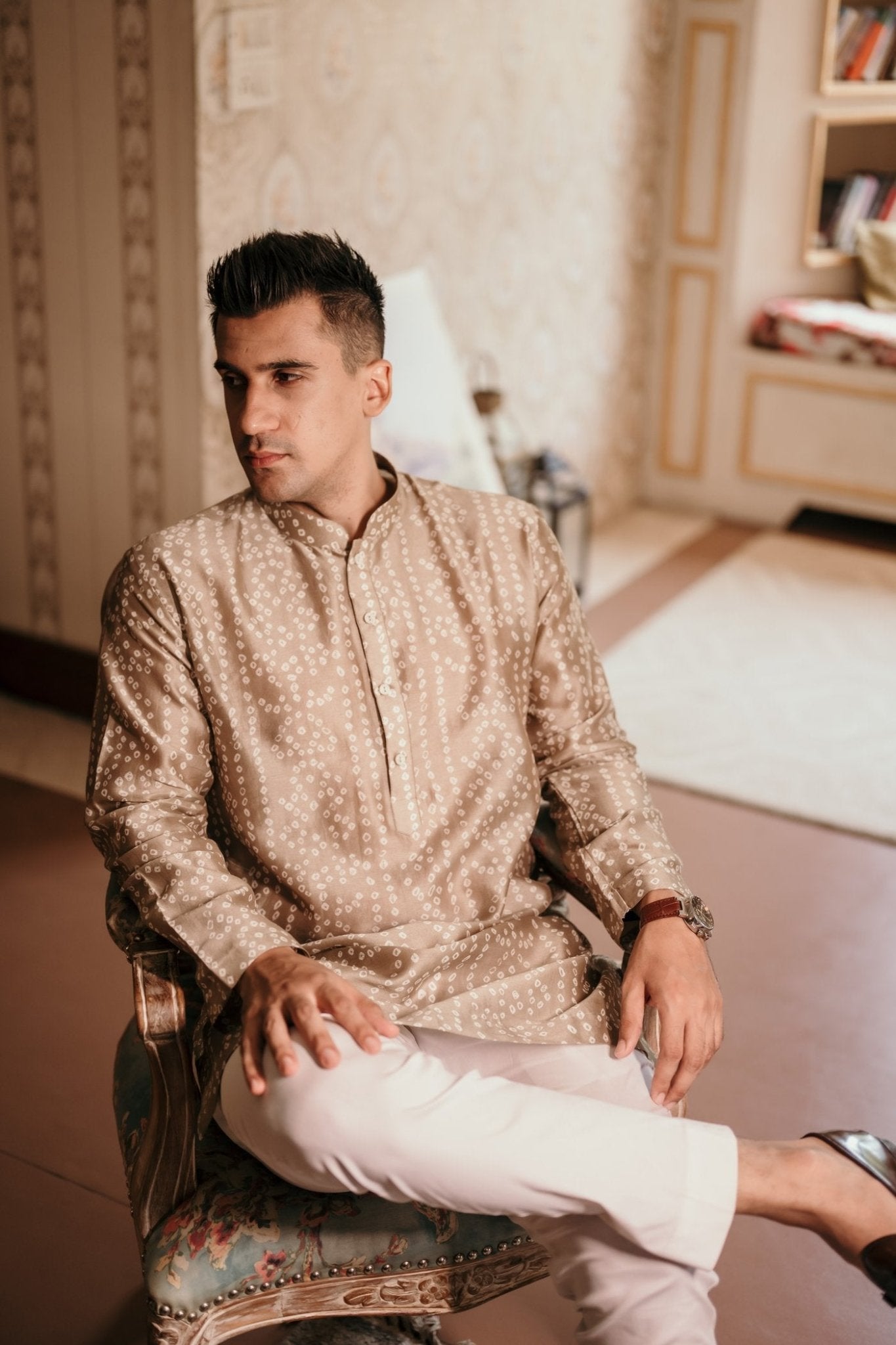 Classic kurta with white polka dots enhances the shine of the kurta. A perfect blend of simplicity and style.