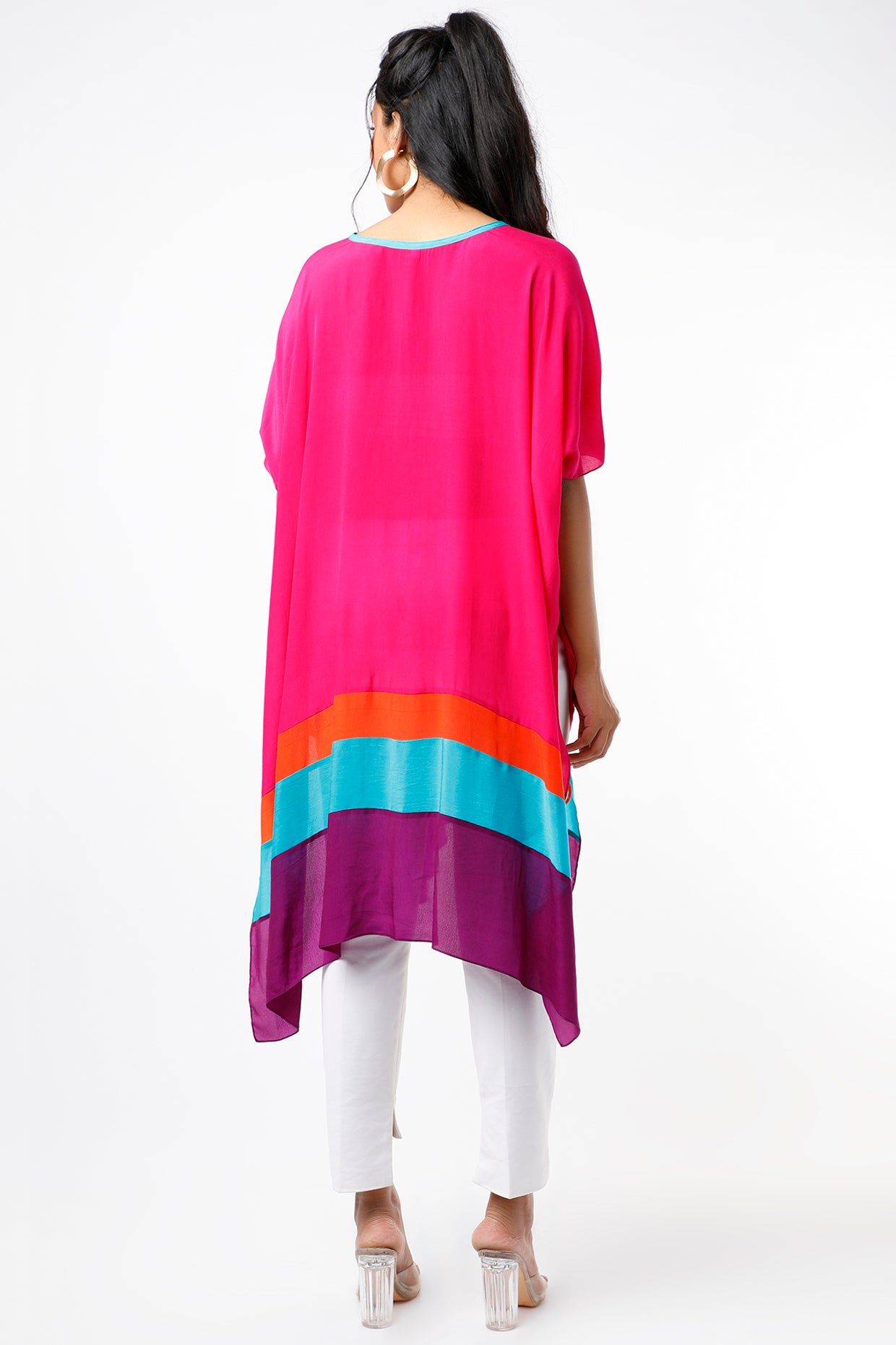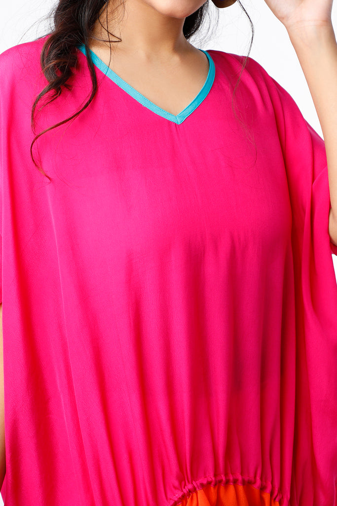 Featuring a fuchsia gathered kaftan top in crepe base with a V-neckline. This contains only one piece.