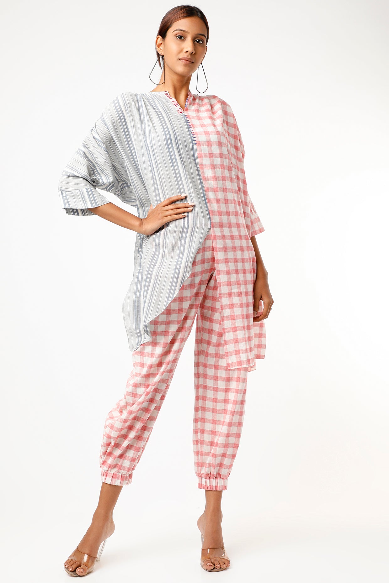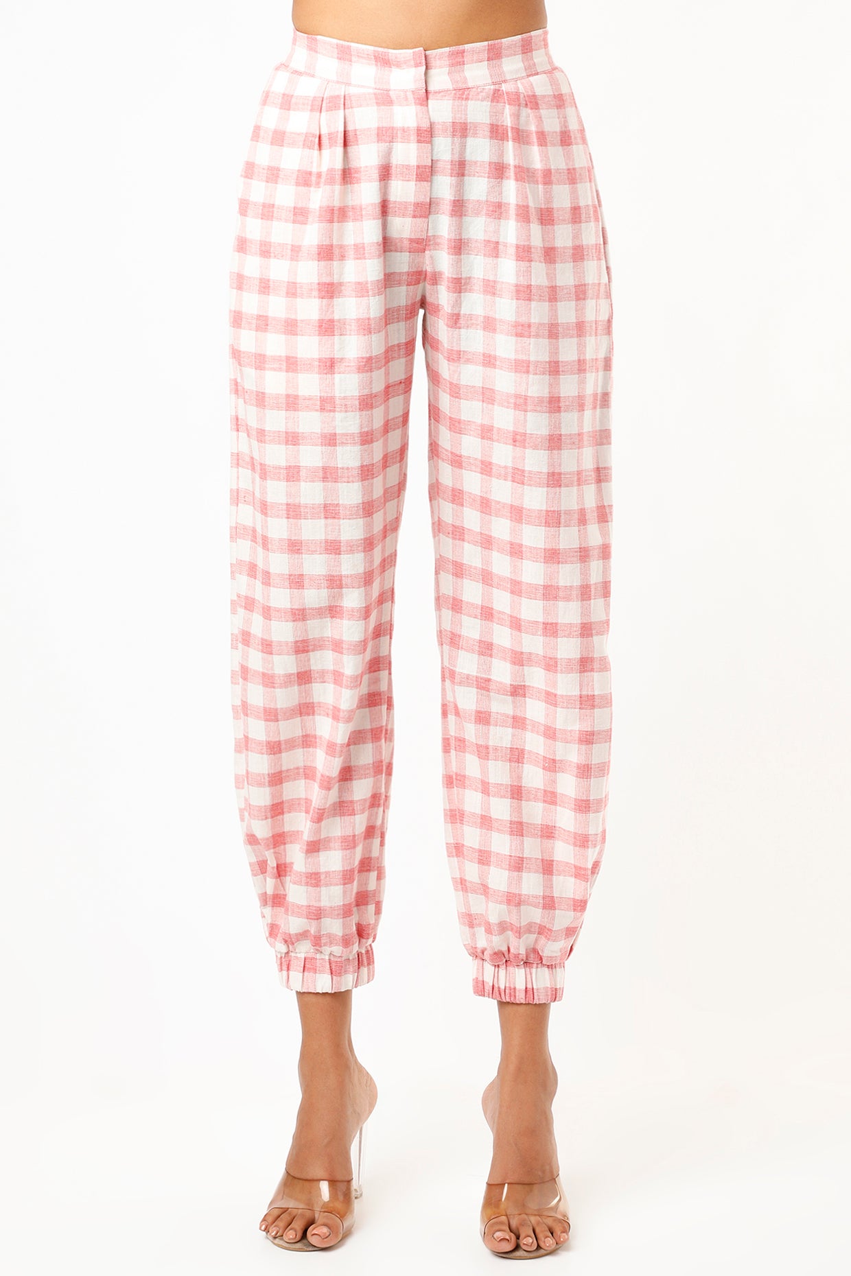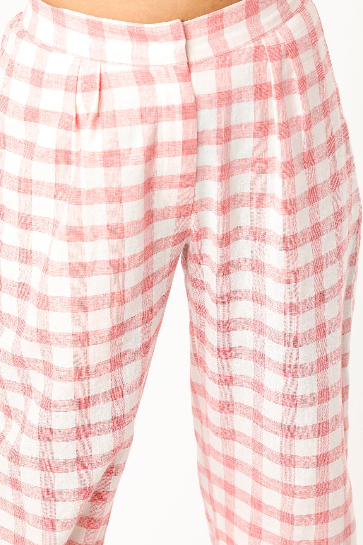 Featuring a Red checks handloom khadi Cotton pants . This contains only one piece.