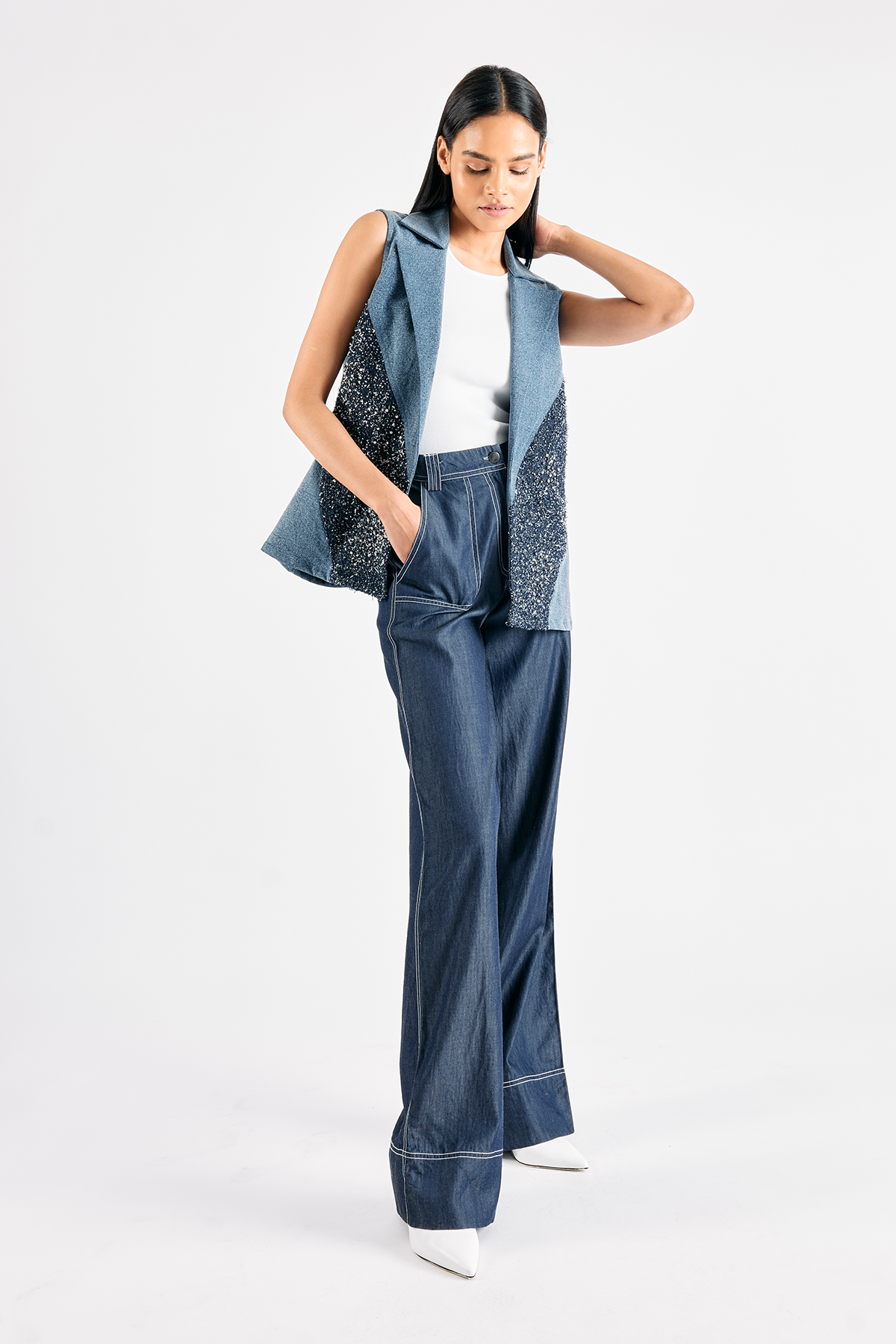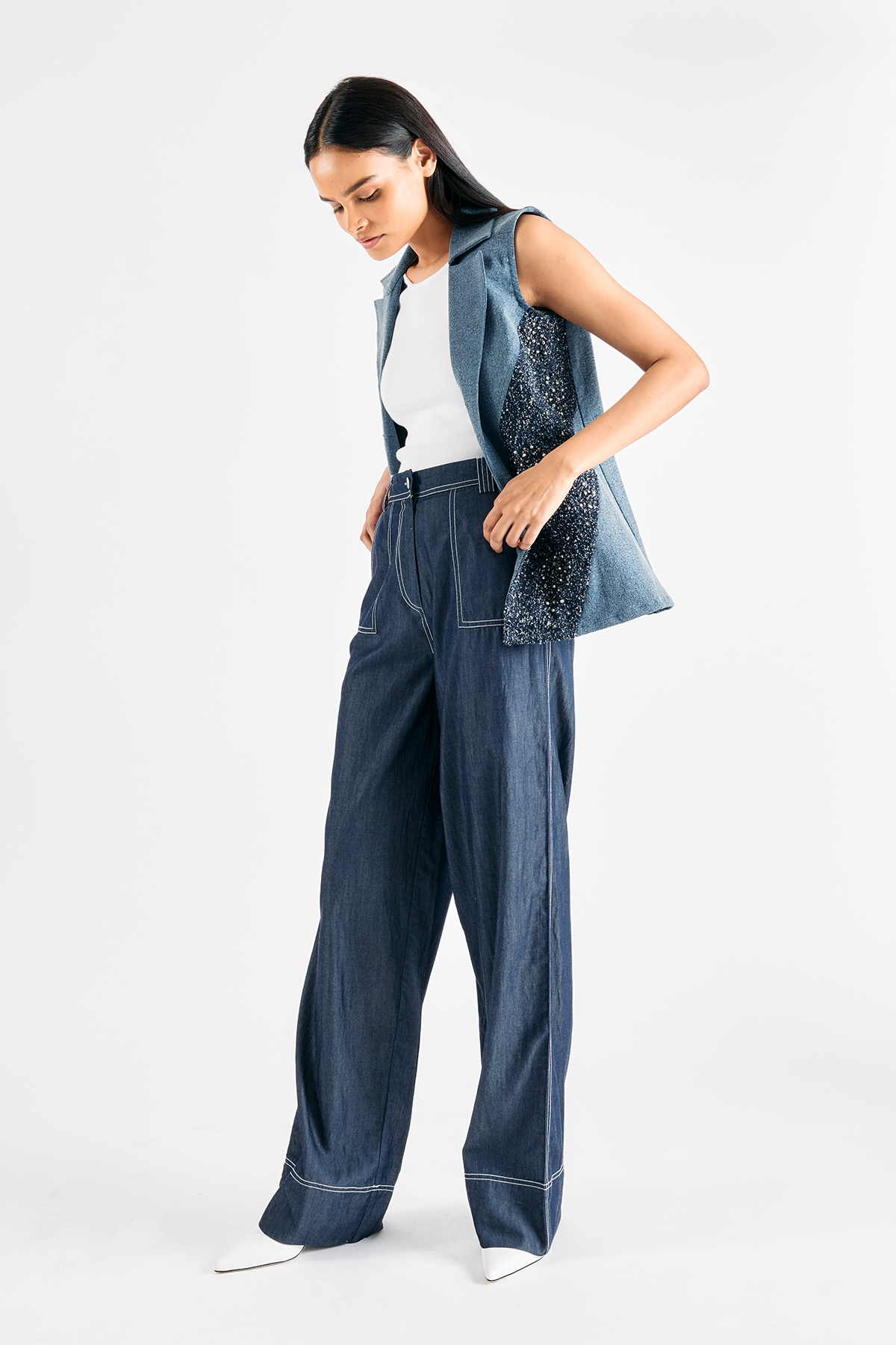White contrast top stitch details