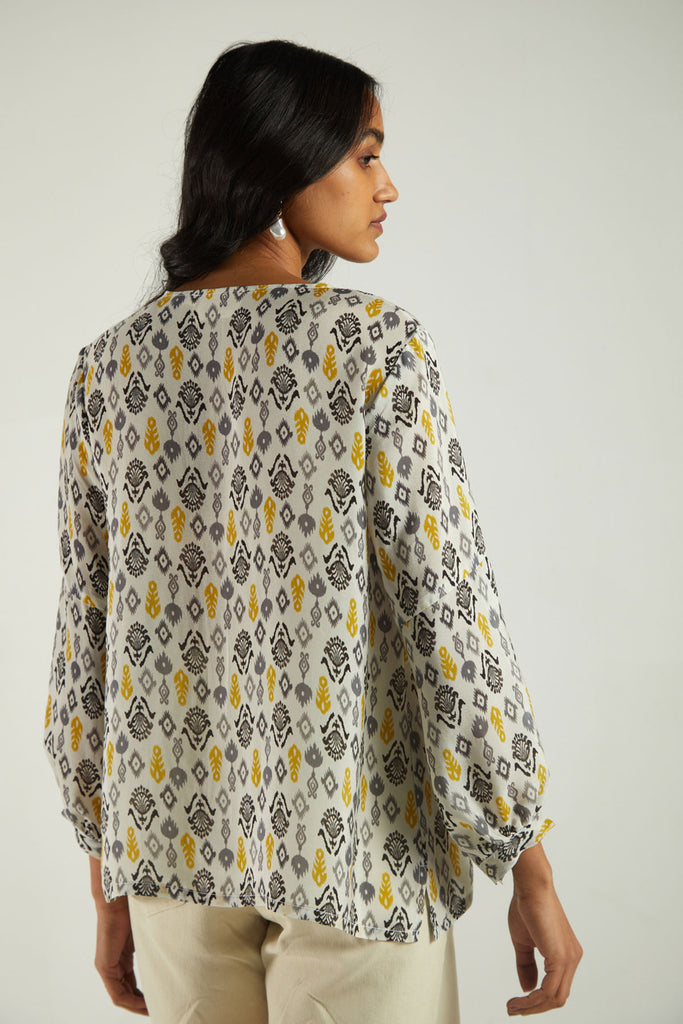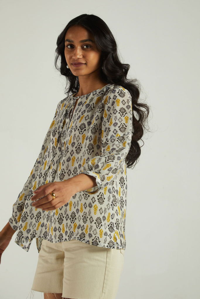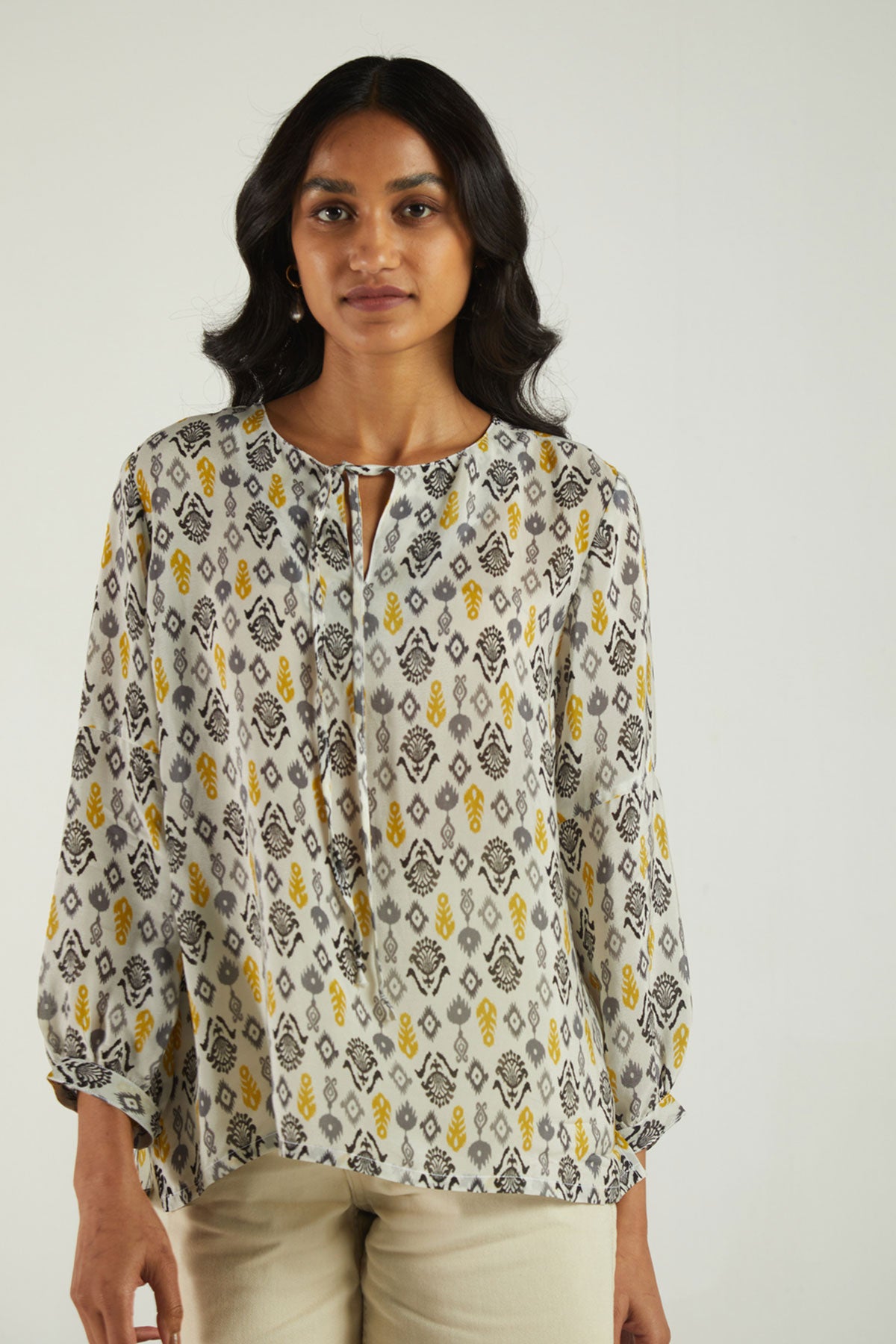 Gathered at the sleeves, this easy top is super comfortable and versatile.