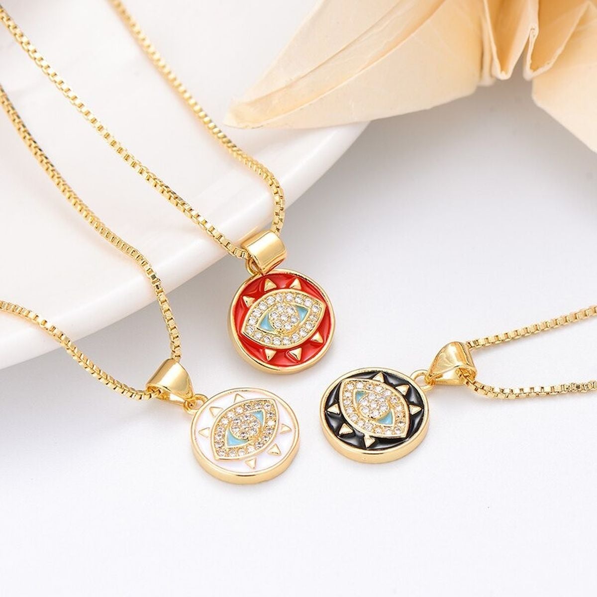 Grab our versatile boho white or black or red coin pendant. Ward off all evil energies with our pieces!