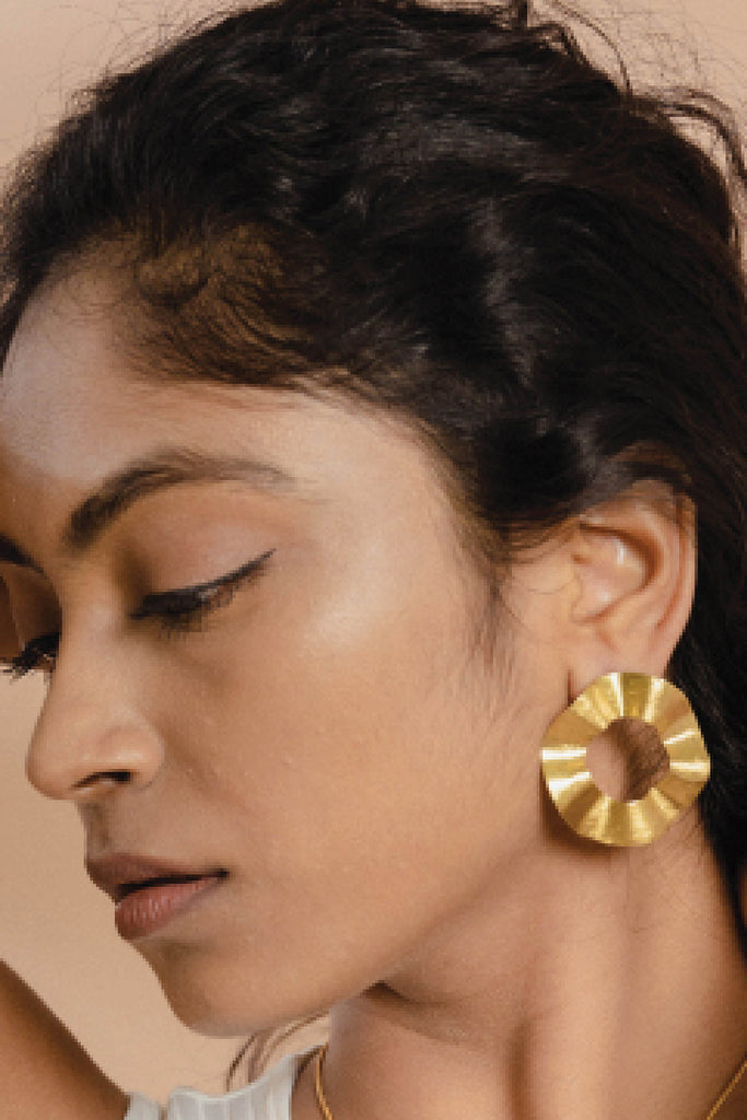 For all the strong yet beautiful, humble yet bold women out there, these gorgeous earrings are for you. Inspired by the flow of an ocean; a flow similar to the multifacets of a woman, the earrings are handcrafted by local artisans using hammering and folding technique in 18kt gold plated brass.