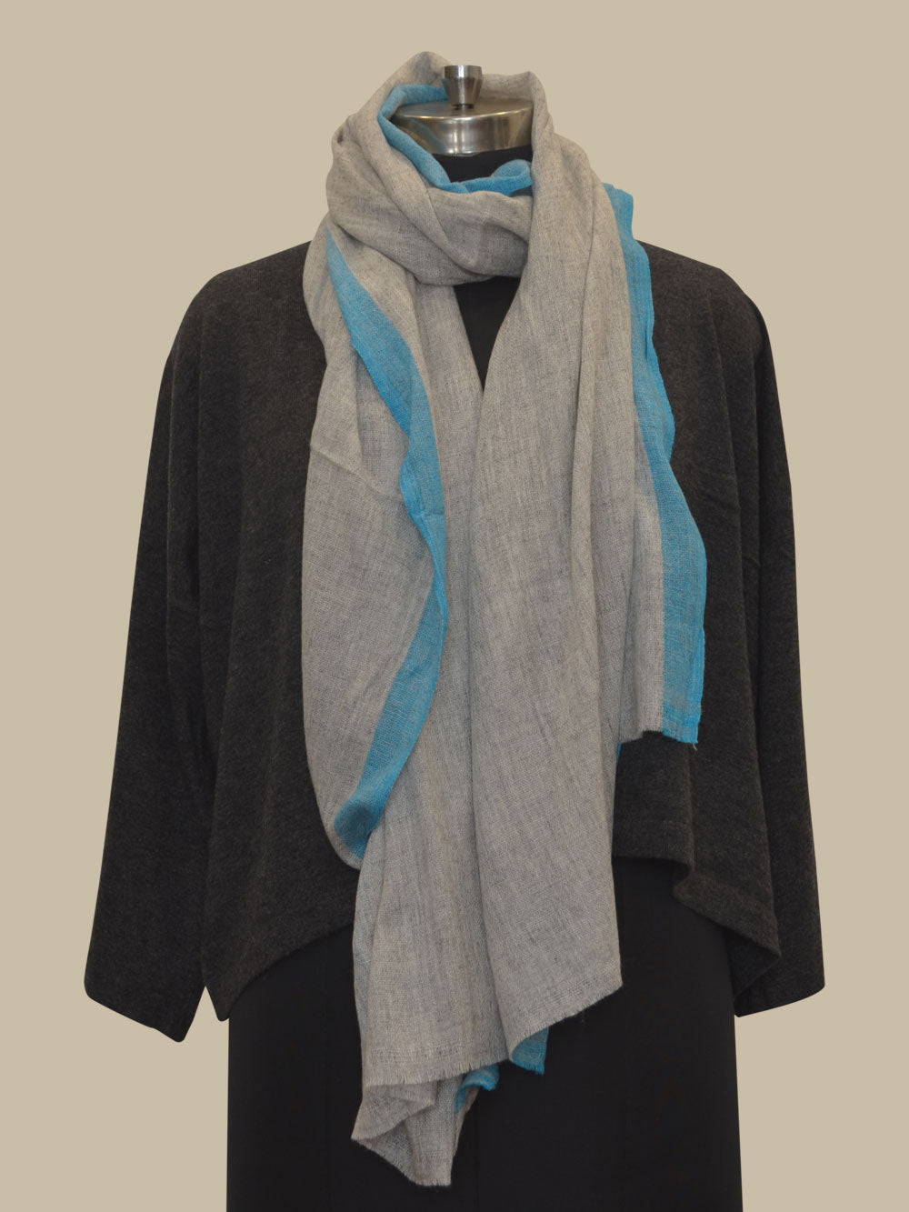 Ash Grey with Turquoise Trimming Organic Scarf