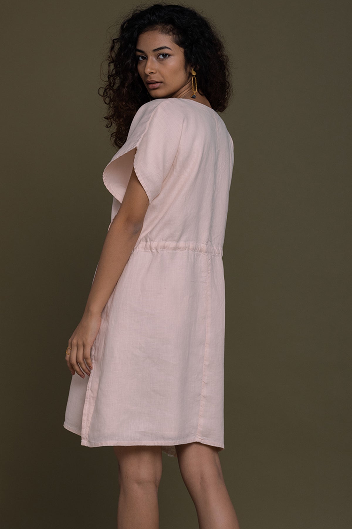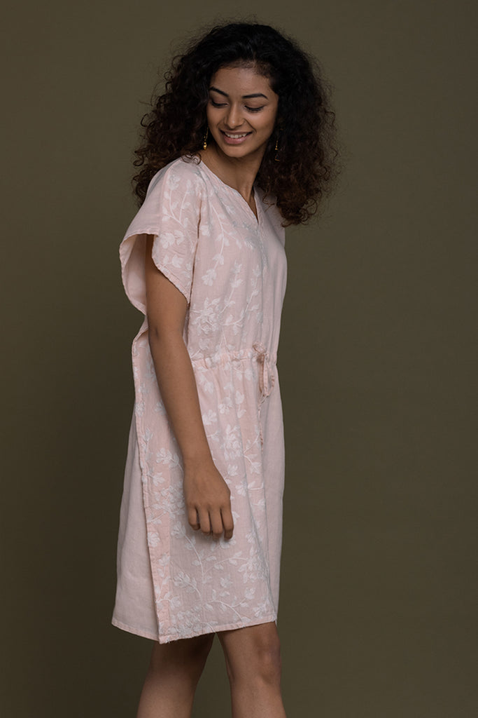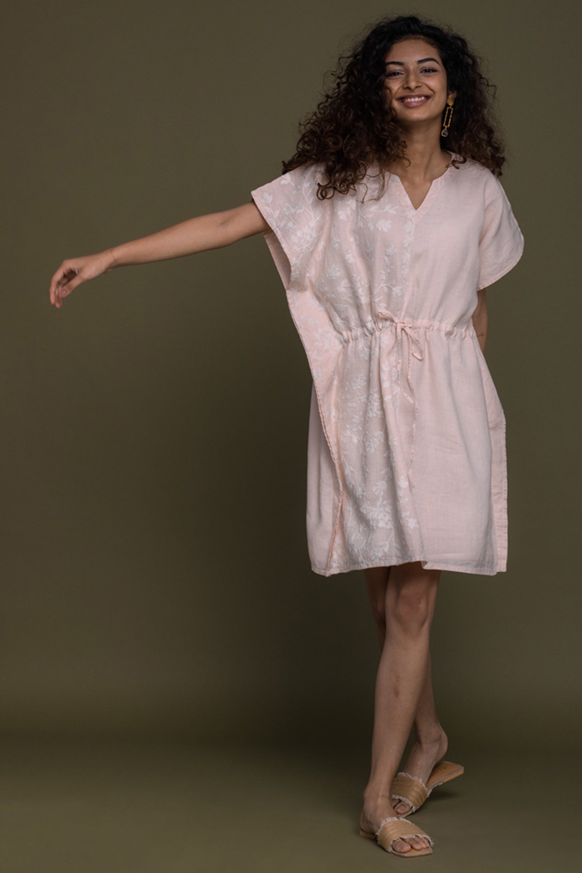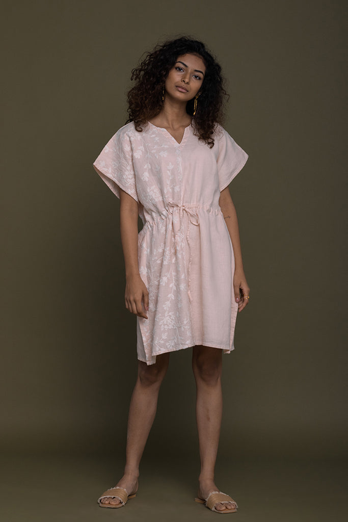 Fashionable and fluid, this half and half drawstring kaftan-style dress with traditional aari embroidery and cinched waist is the ultimate style and comfort statement.