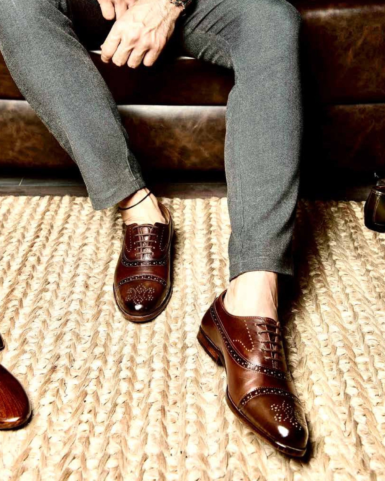 One of the classiest pairs in laceups where we have experimented with the perforated pattern and this dual mix of brown shade. It is hand painted and in pure leather.