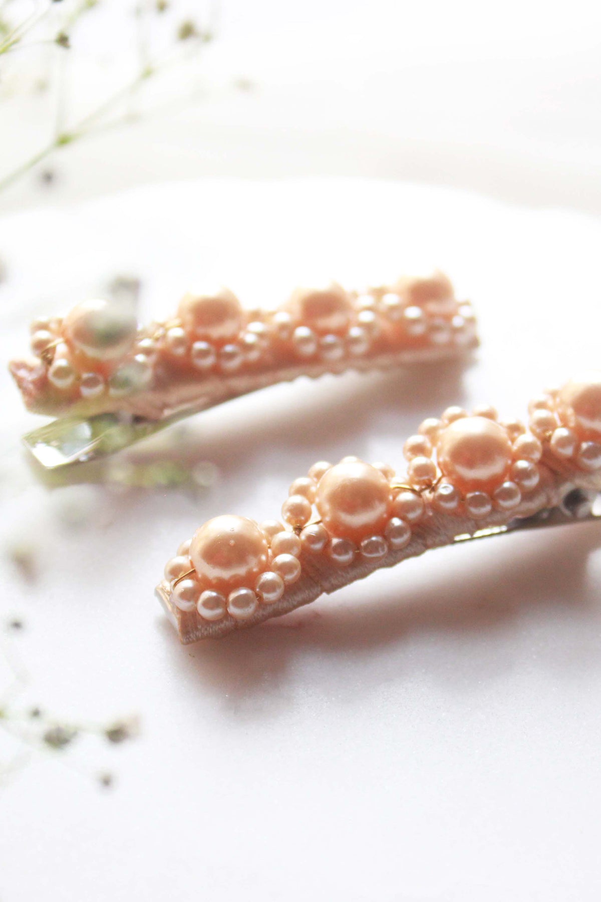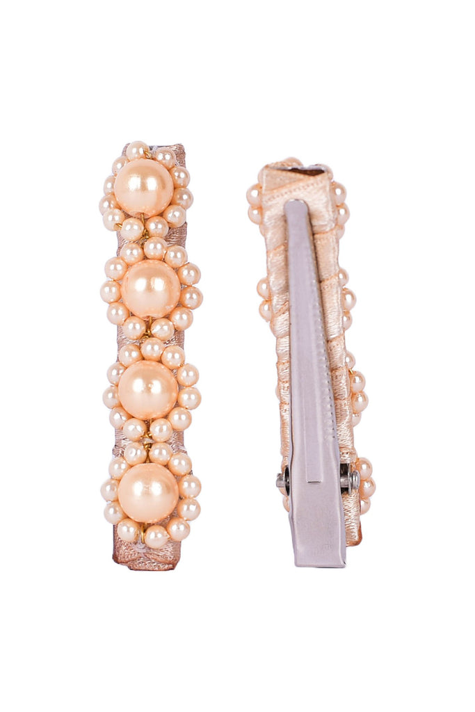 Beige Embellished Floral Hairclips - (Set of 2) - Handmade