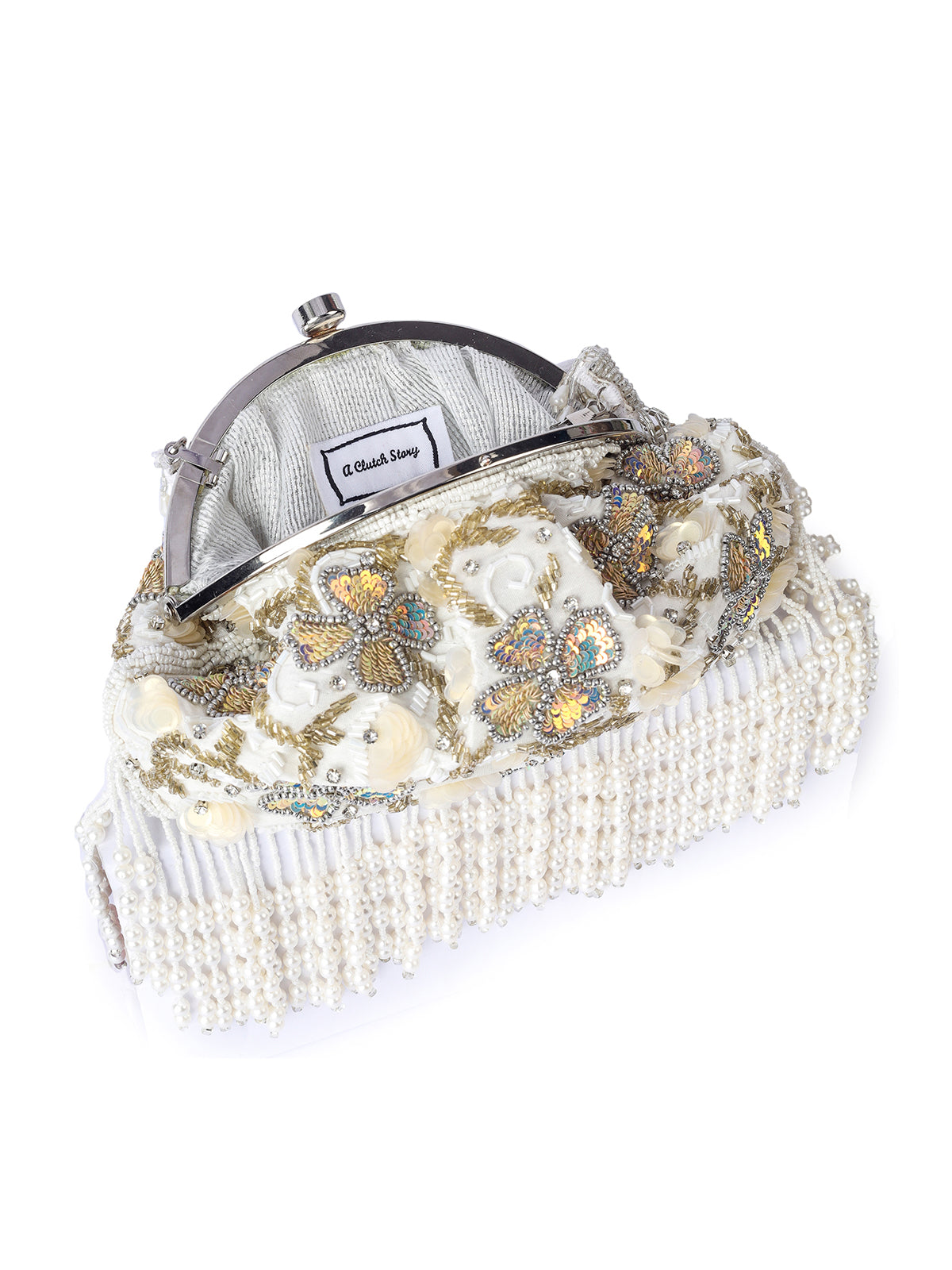 The Clutch comes with a Hand embroidered handle.
