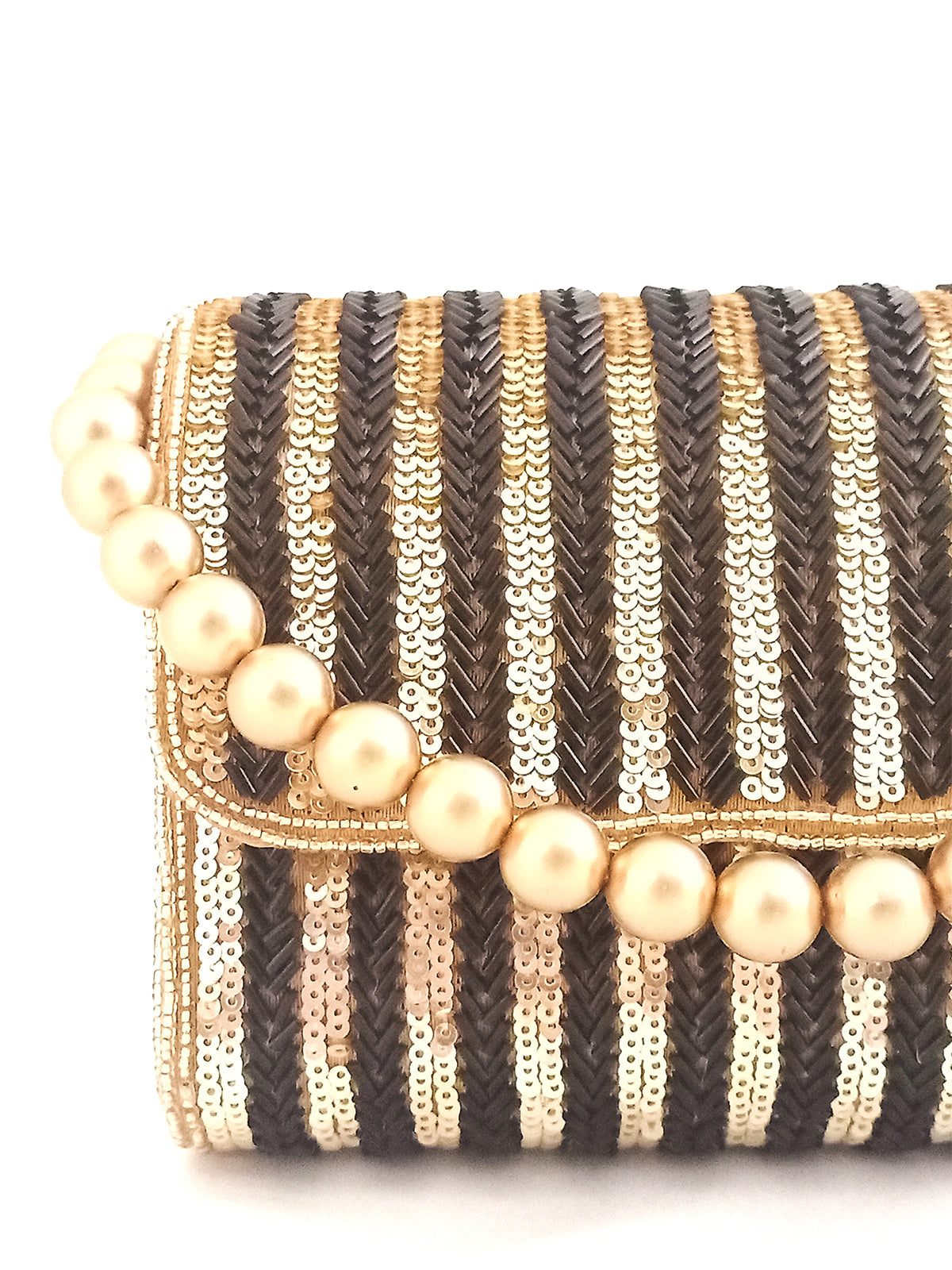 The Clutch Comes with a Gold Beads handle.