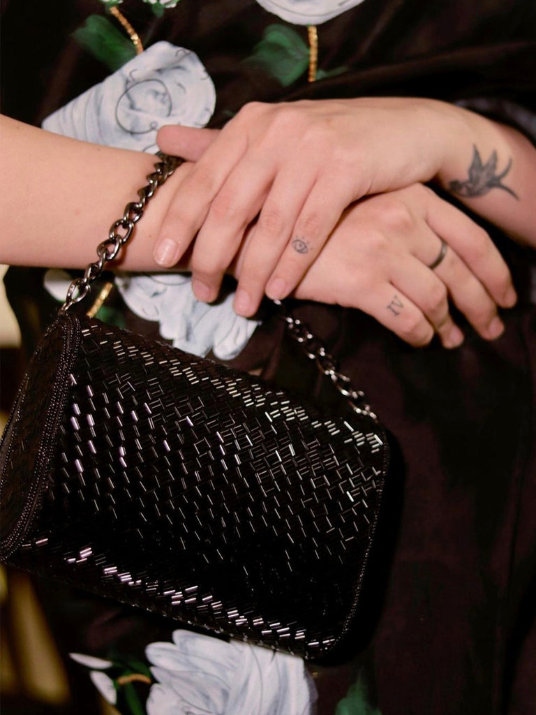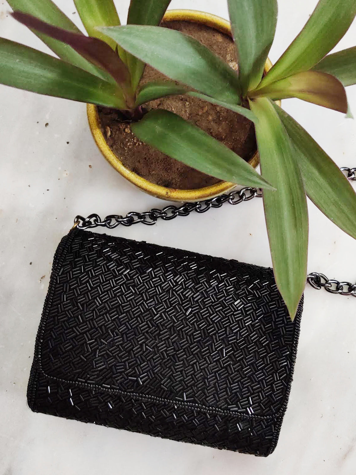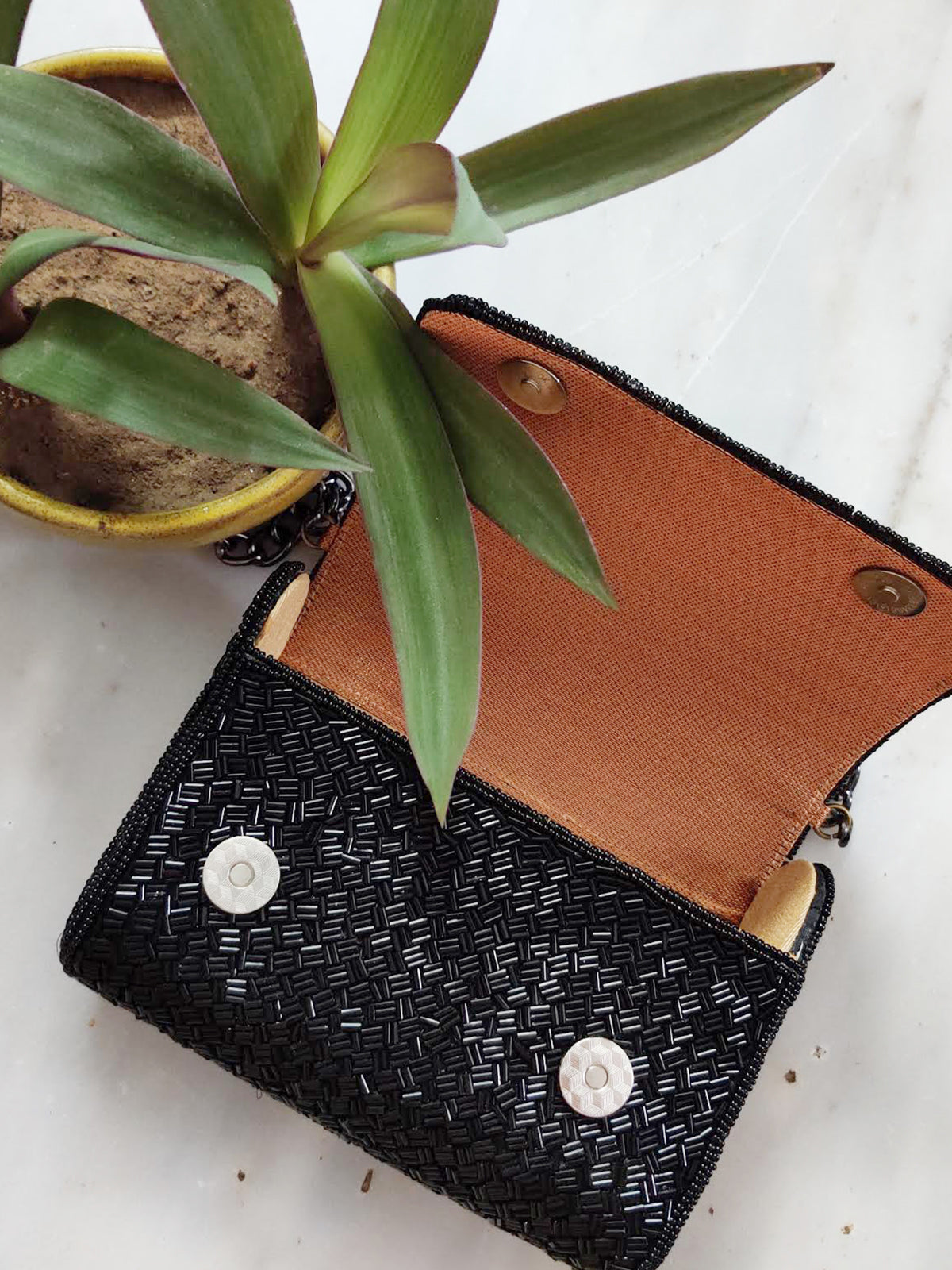 Hand embroidered clutch with Silk Lining and Bugle beads work on both sides.