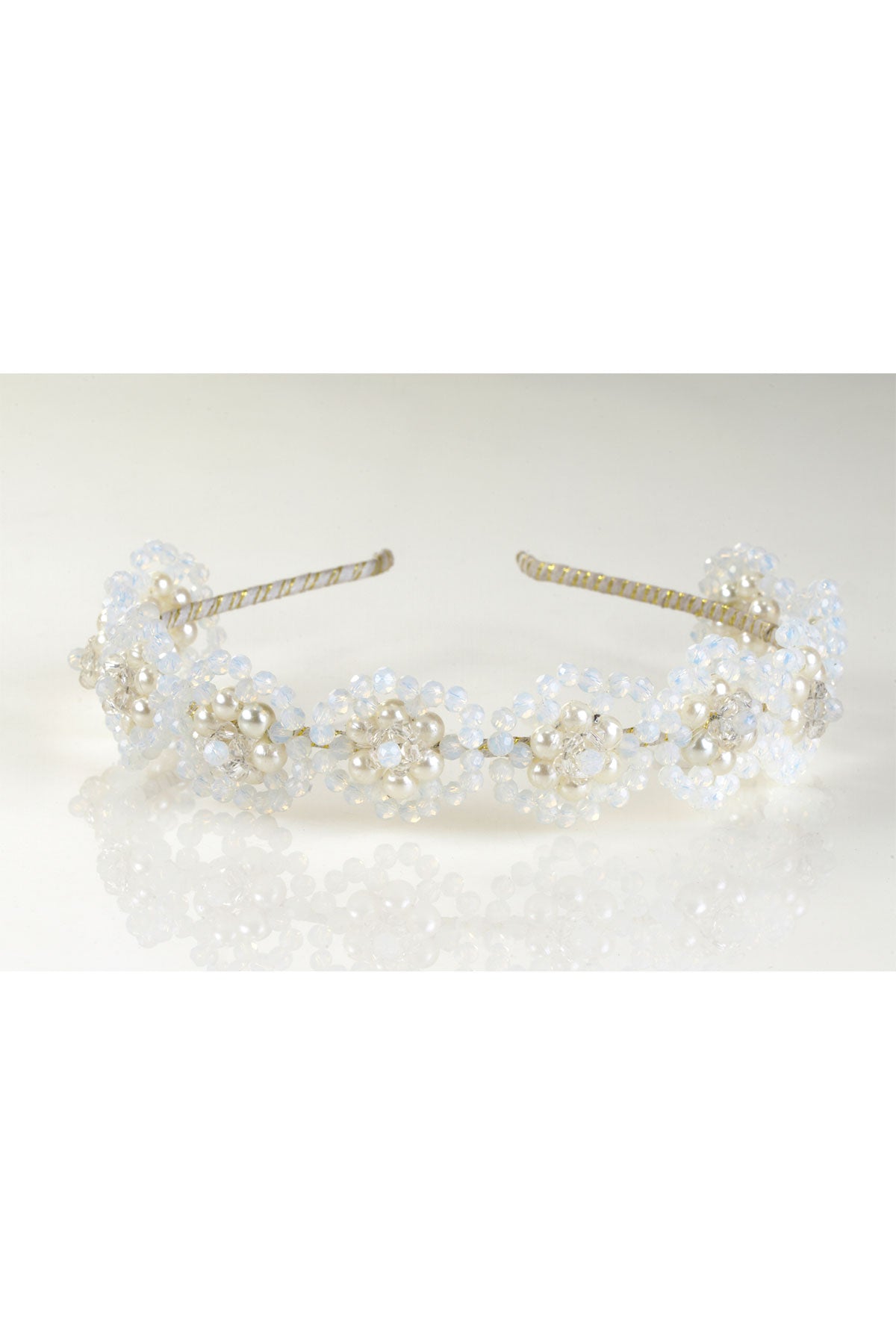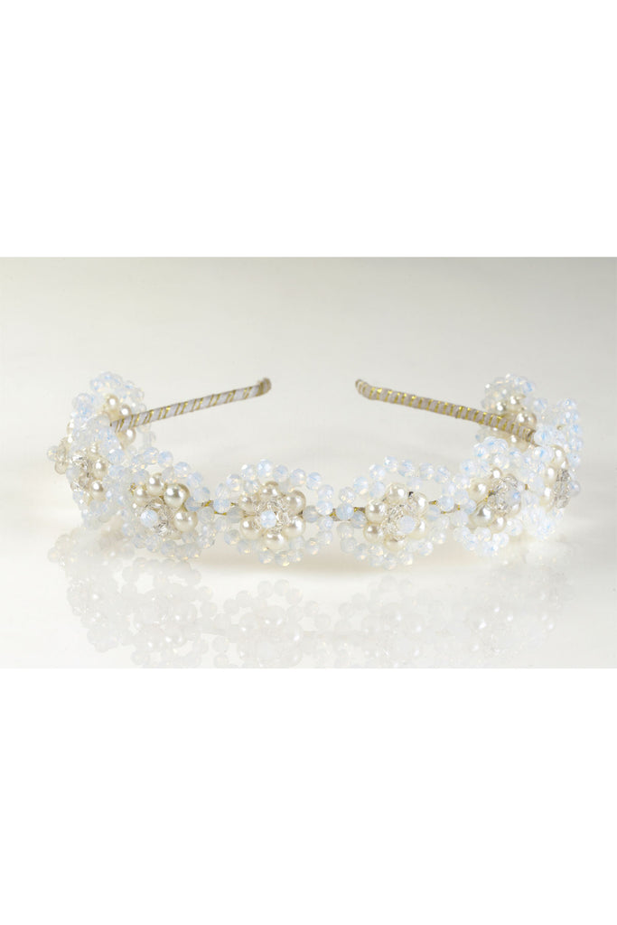Blossoming Pearls and Floral Crystals Hairband - Off White - Handmade