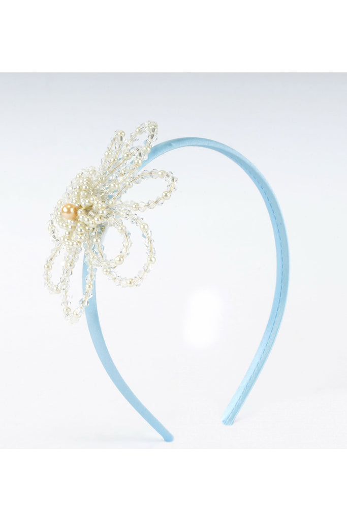 Blue Floral Beaded Hairband with Pearls - Blue, Off White