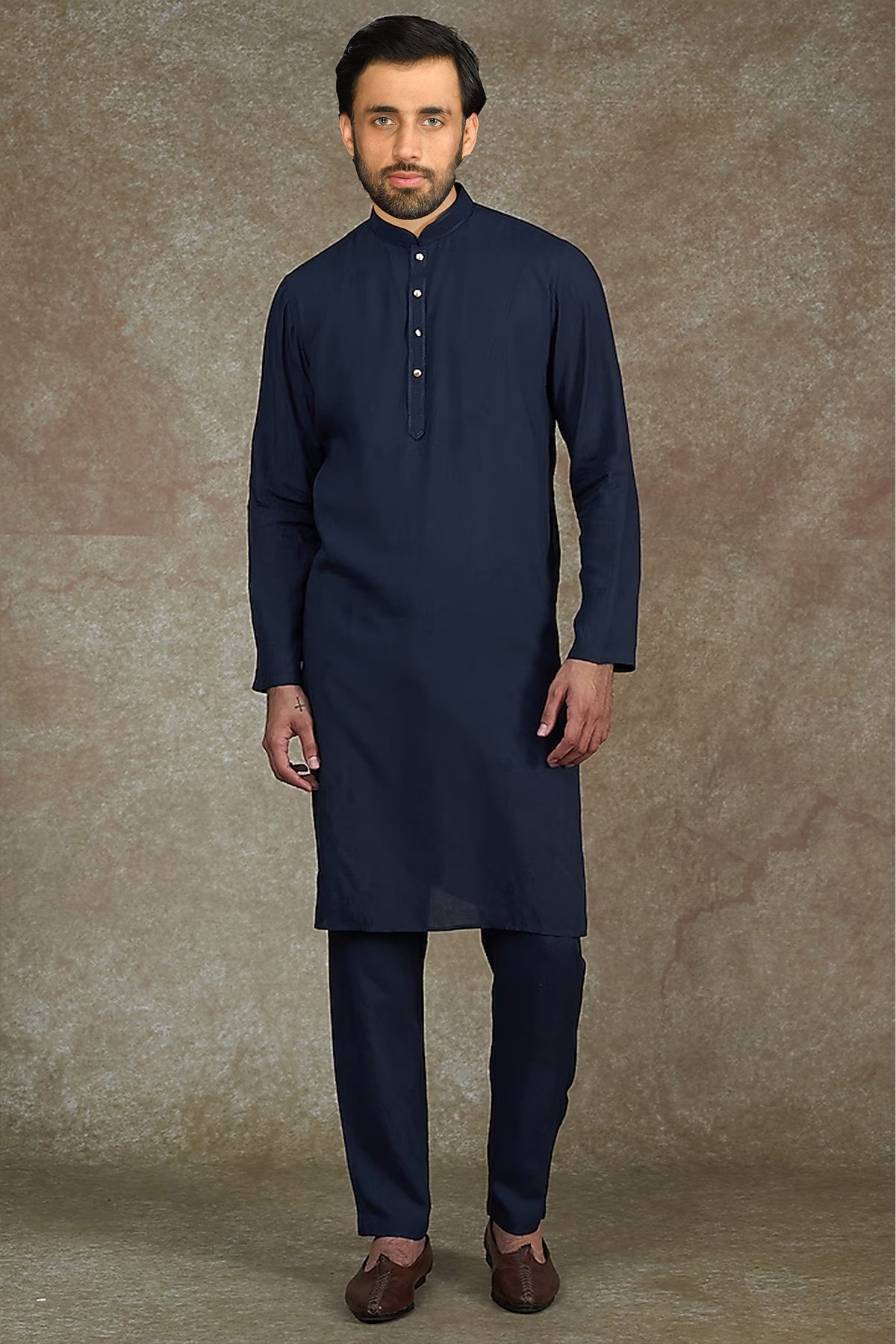 Blue Kurta with Machine Embroidery paired with Pant