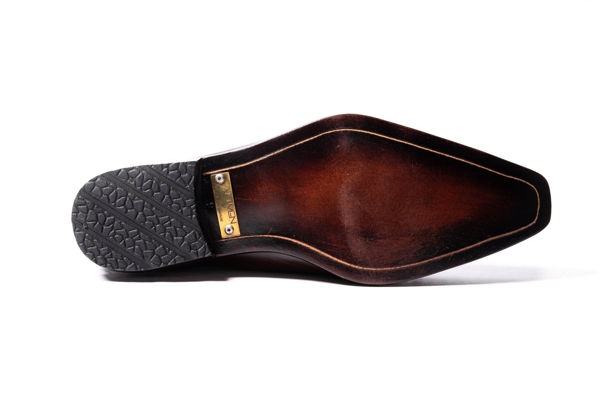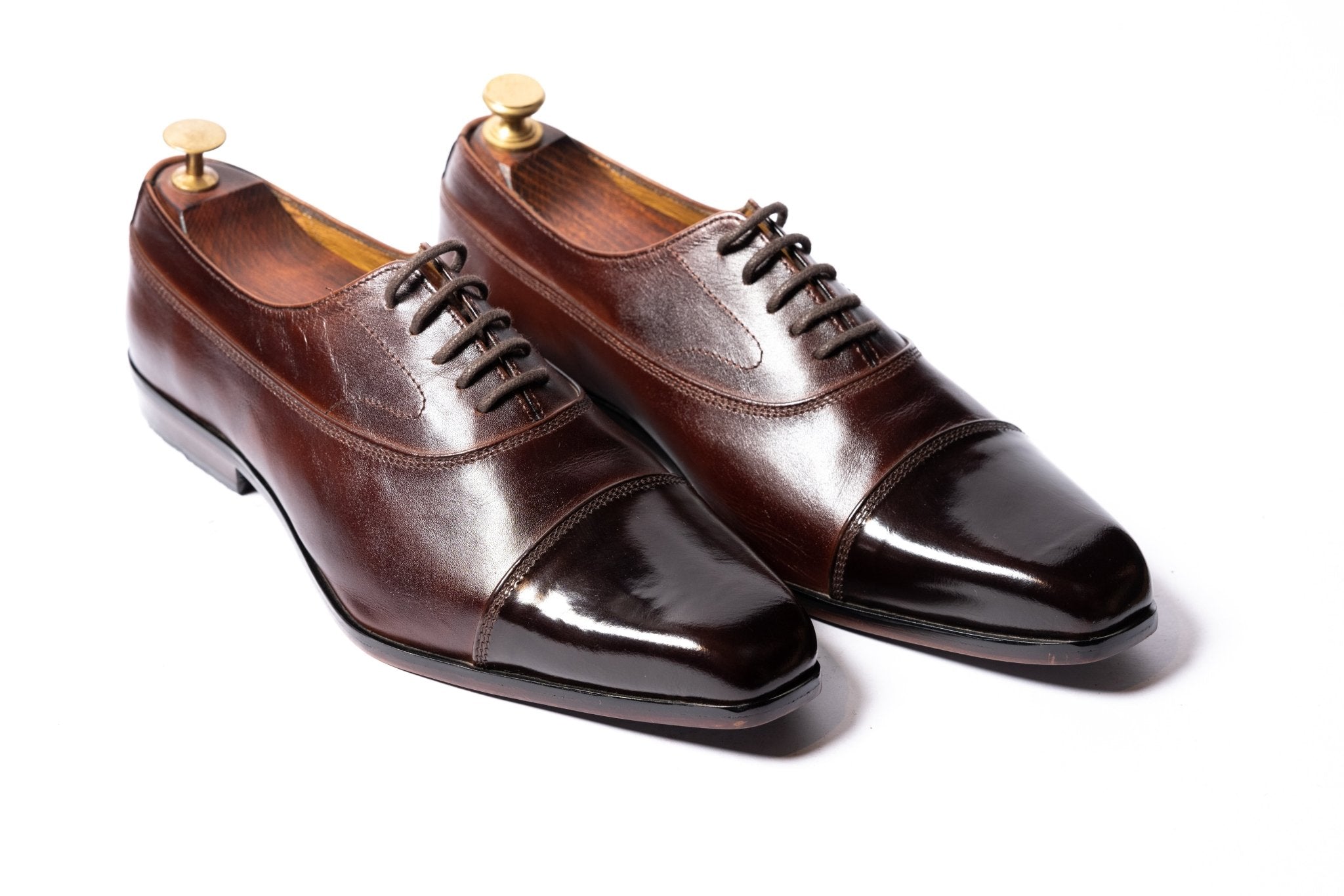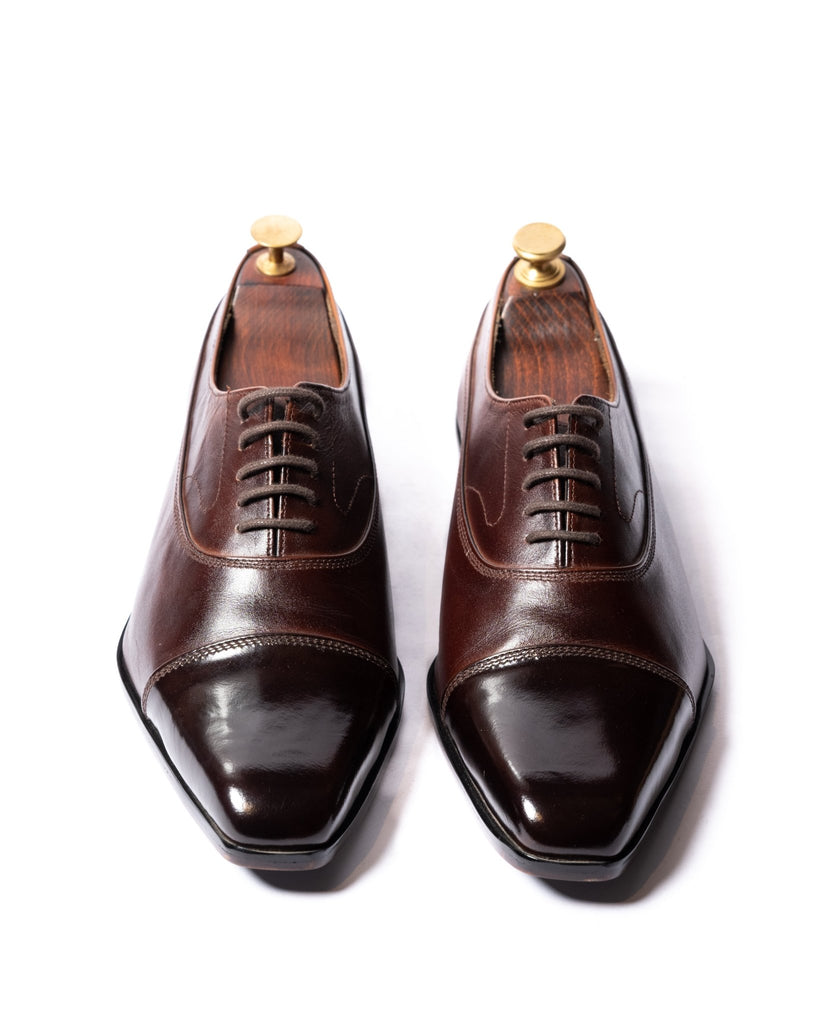 An elegant mix of burnt brown and a brushed brown, these oxfords can perfectly blend in corporate as well as a formal night out step. The shine infront adds character to the design.