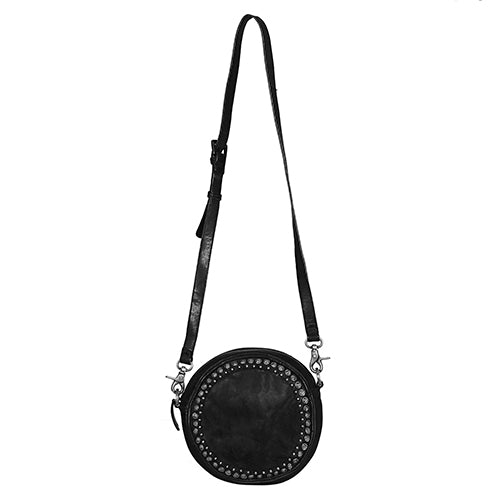 Round bags have our heart for life! These bags are extremely convenient and also come with a zipper pocket. This black coloured bag is all you need to get through the day!