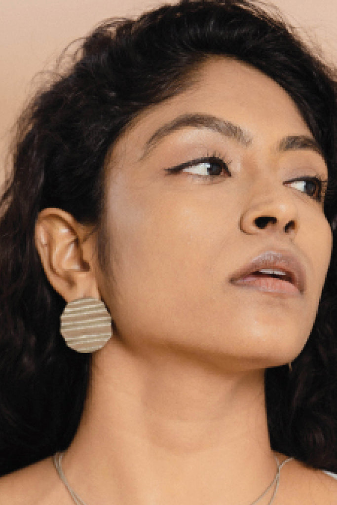For all the strong yet beautiful, humble yet bold women out there, these gorgeous earrings are for you. Inspired by the flow of an ocean; a flow similar to the multifacets of a woman, the earrings are handcrafted by local artisans using hammering and folding technique in 18kt gold plated brass.